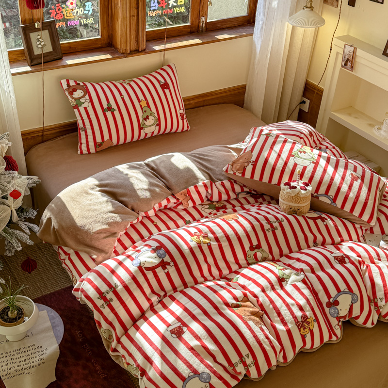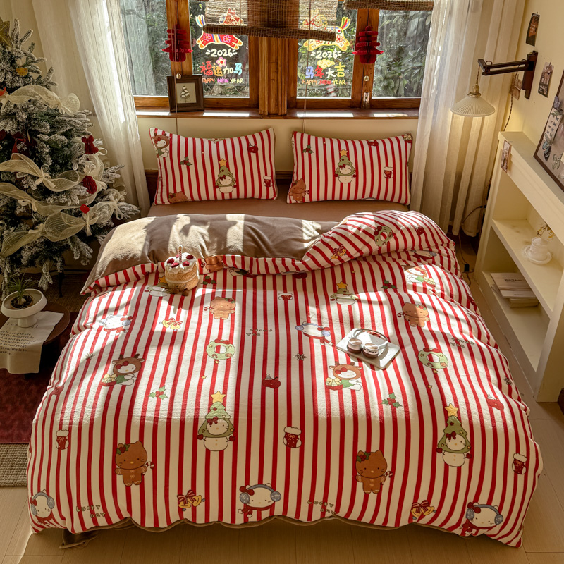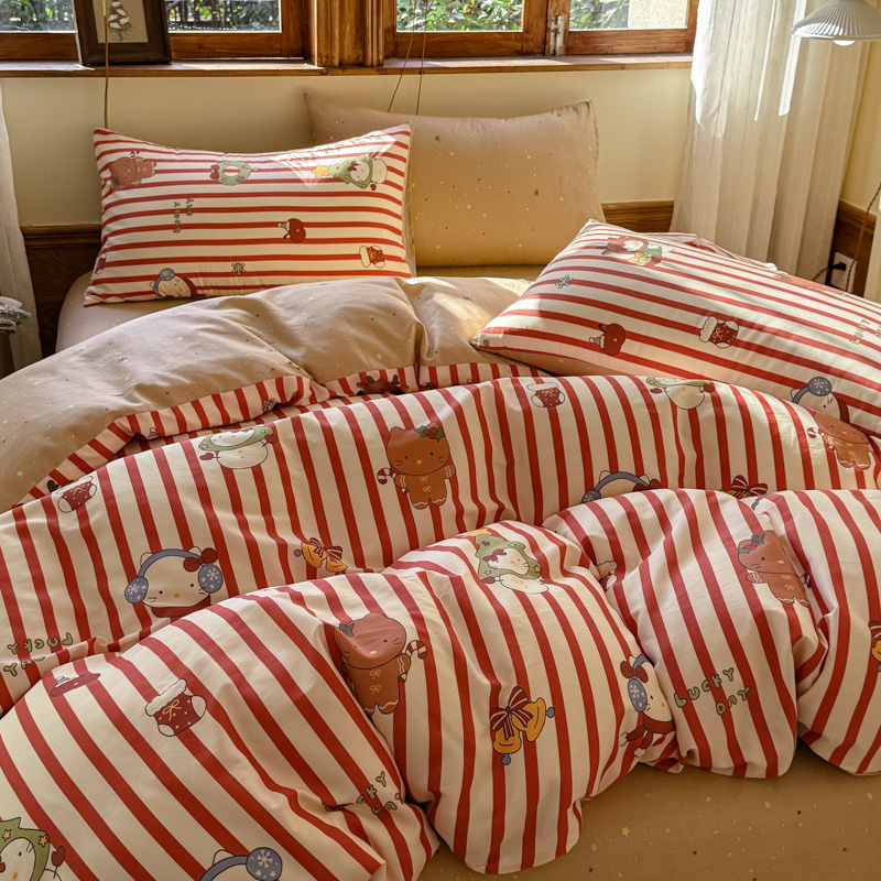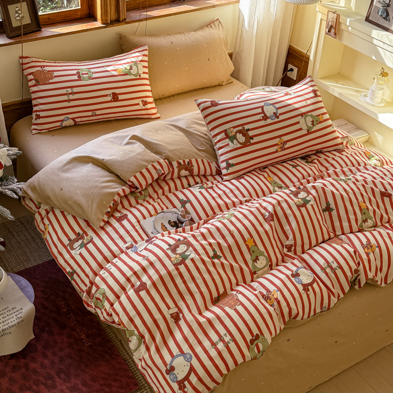 (总)桃喜 2026新款全棉混搭卡通印花学生三件套四件套,费尔岛蝴蝶结小狗,费尔岛小熊,可爱动物团,可爱小兔子,星星猫咪