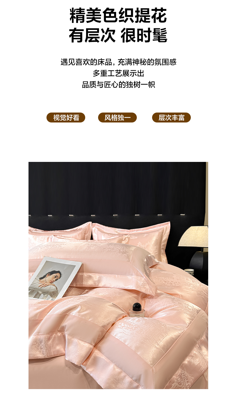 (总)博纳家纺 2026新款高端色织提花拼角绣花宽边亲肤棉四件套海韵系列,海韵-粉玉,海韵-绅士灰,海韵-香槟