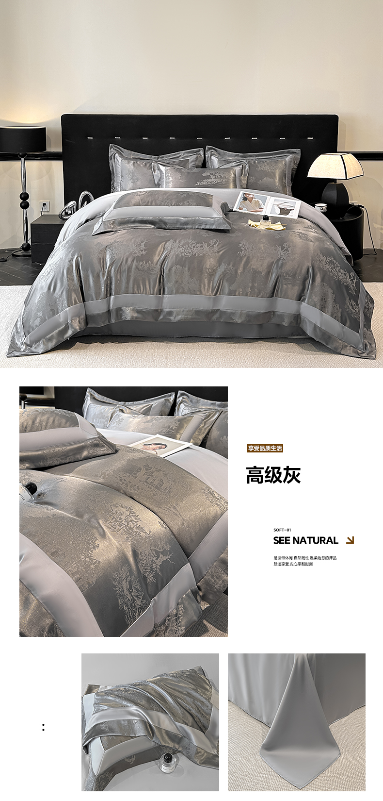 (总)博纳家纺 2025新款镂空大宽边拼角高级简奢款亲肤棉四件套-山水提花,繁星蓝,粉玉,高级灰,香槟,象牙白