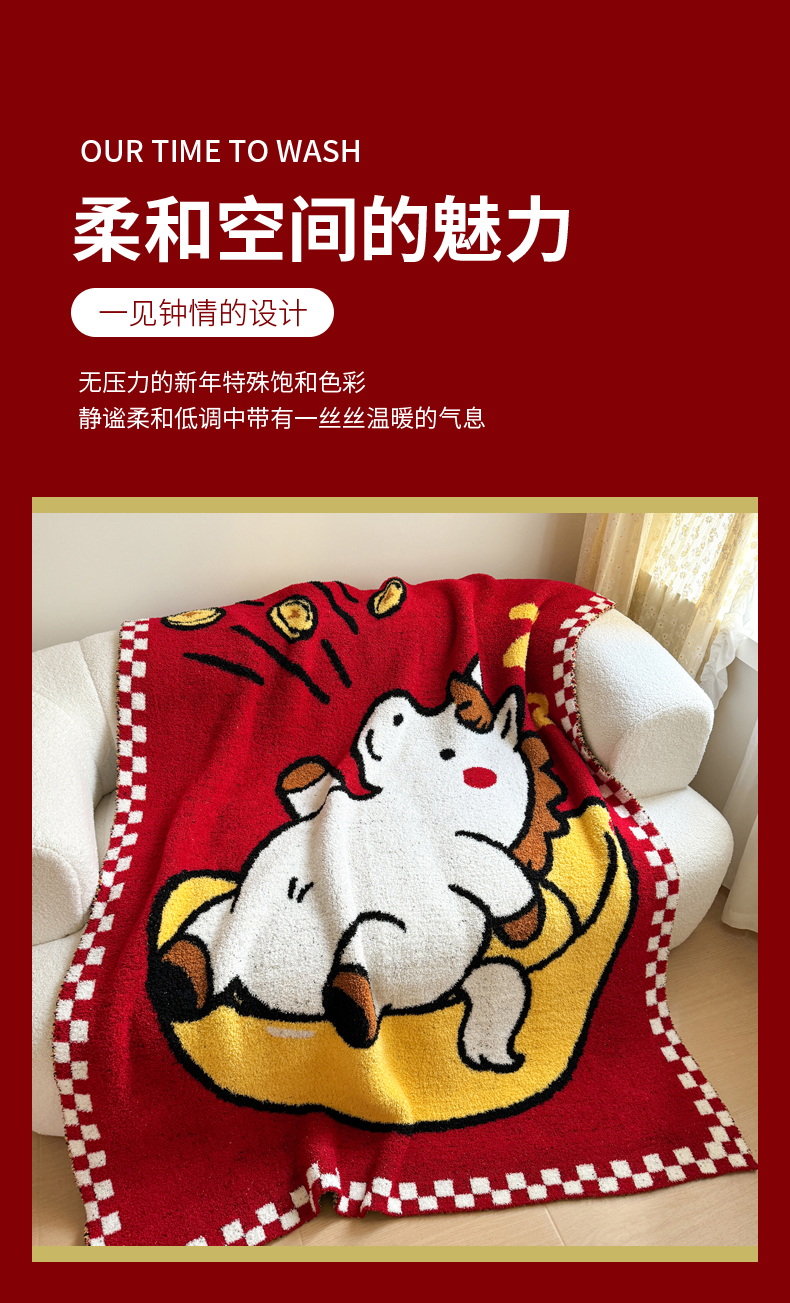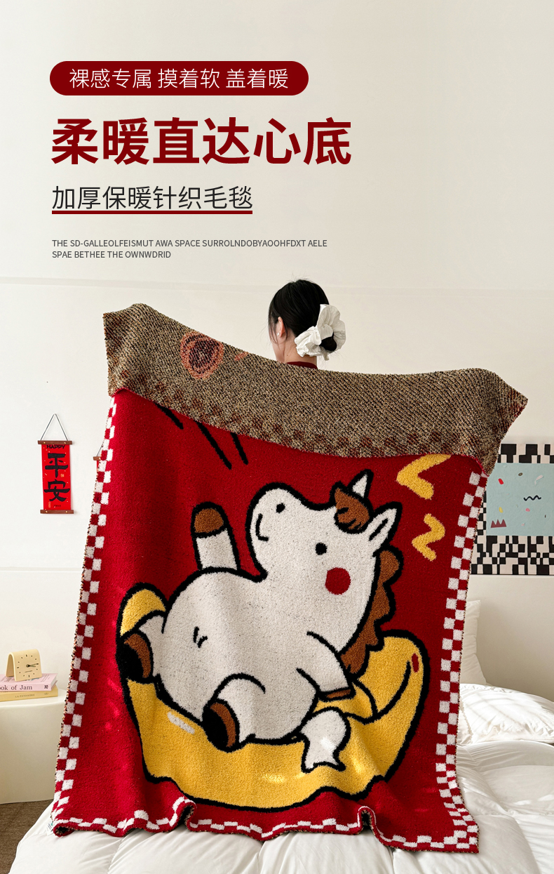 商品名称:丹本家纺 2026新款A类软糯半边绒毛毯毯子马年暖心针织毯 元宝马
