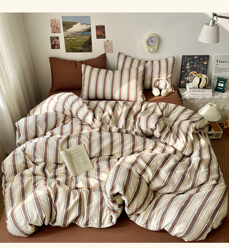 当前位置: 91家纺网 > 商品网购 > 床品套件 > 四件套 > 双层纱四件套 > 海岛哥哥 2026新款双层纱格条系列四件套 奶油墨灰格