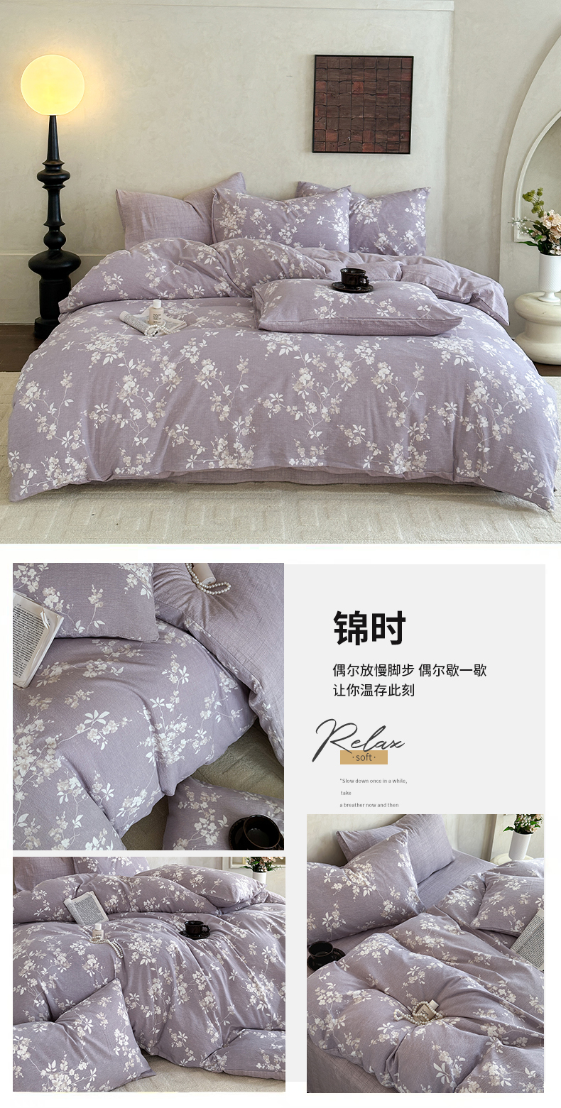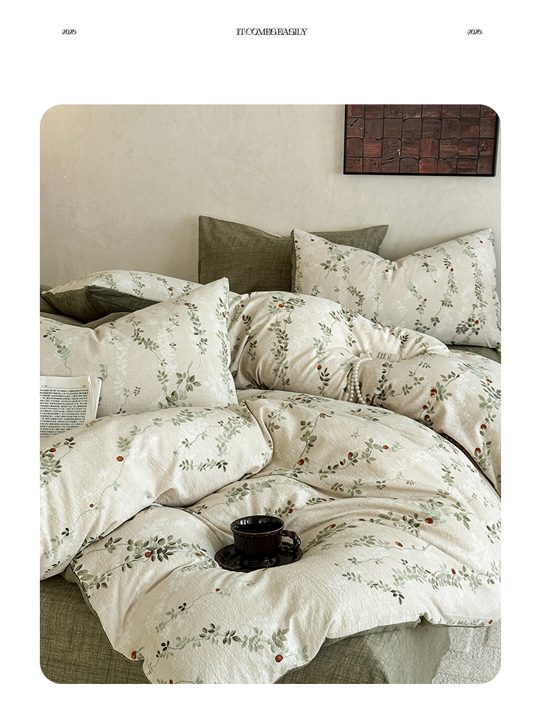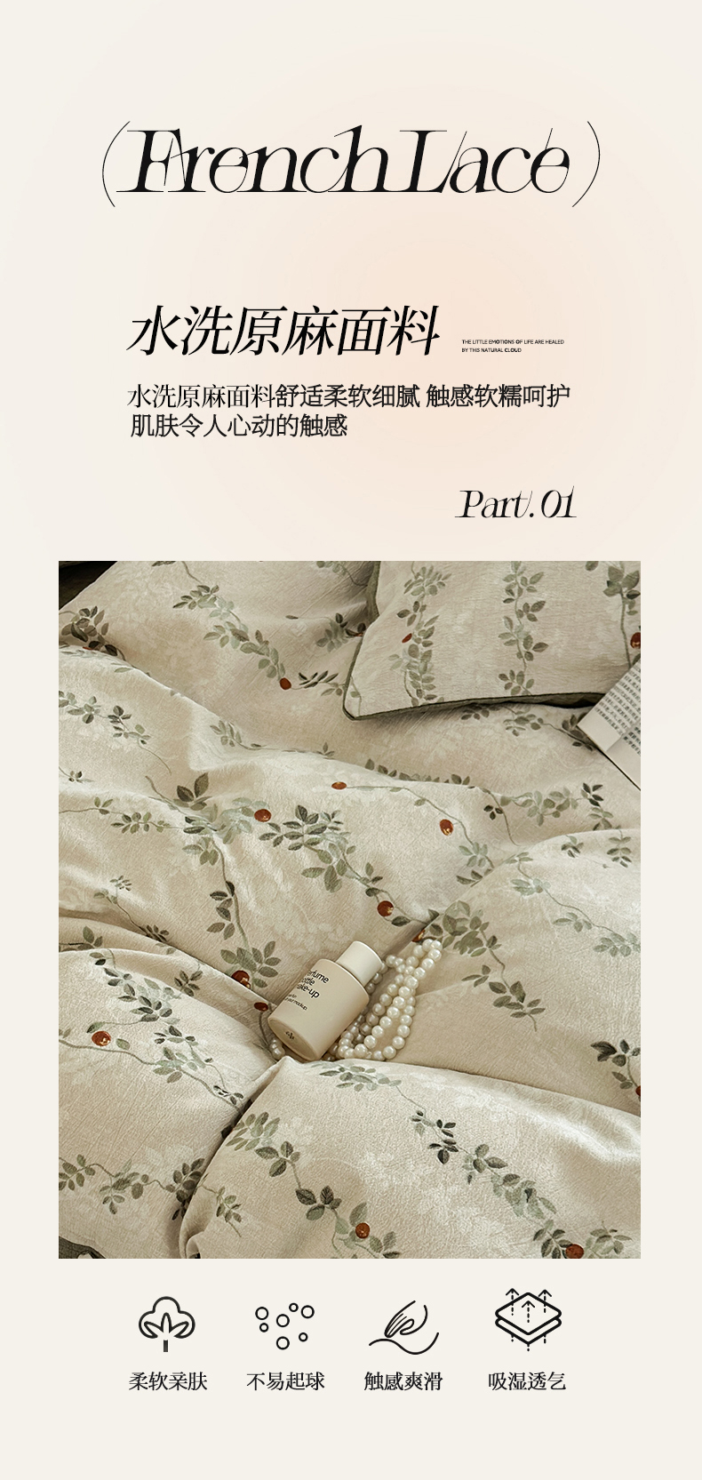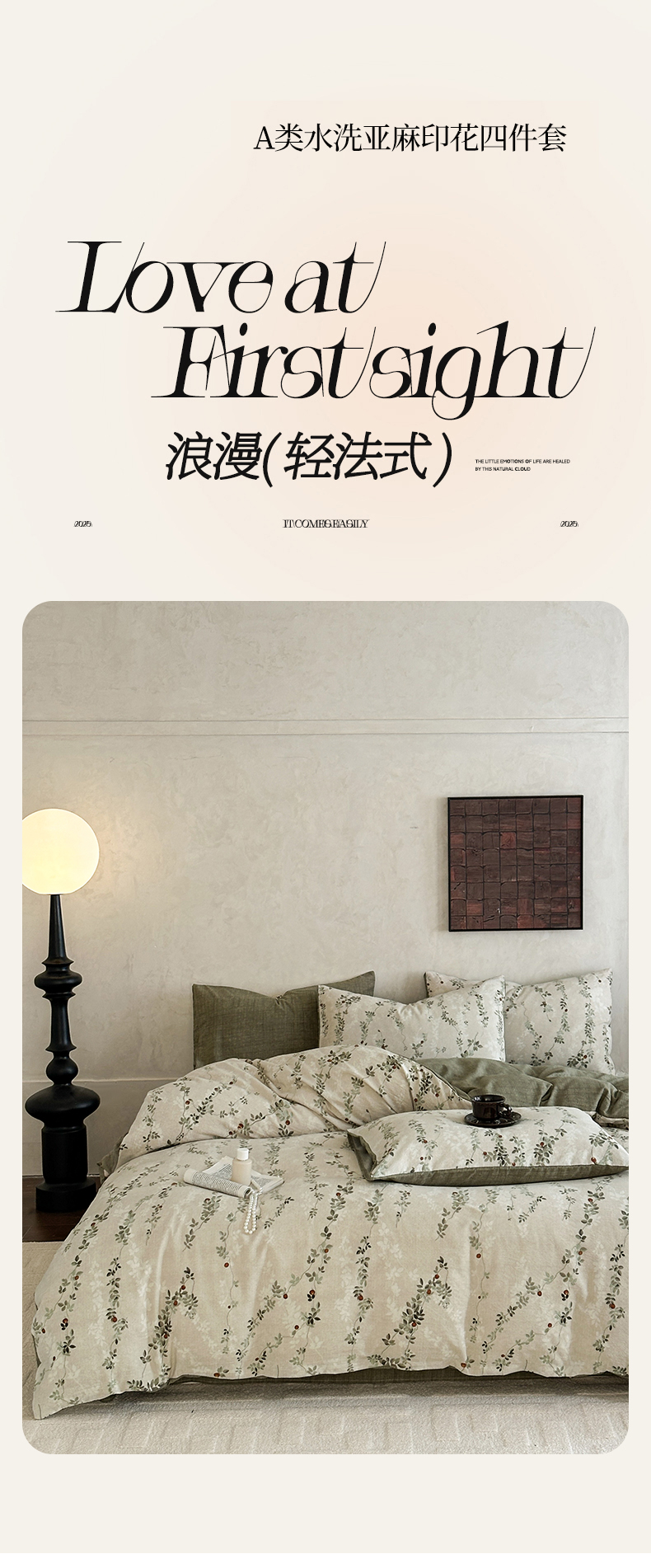 当前位置: 91家纺网 > 商品网购 > 床品套件 > 四件套 > 水洗棉四件套 > 桔禾家纺 2026新款提花高克重原麻复古水洗亚麻皱皱纱印花四件套 境素