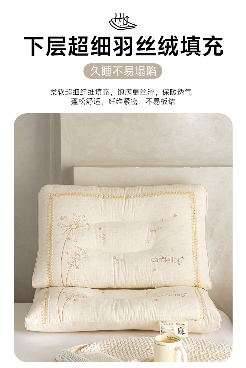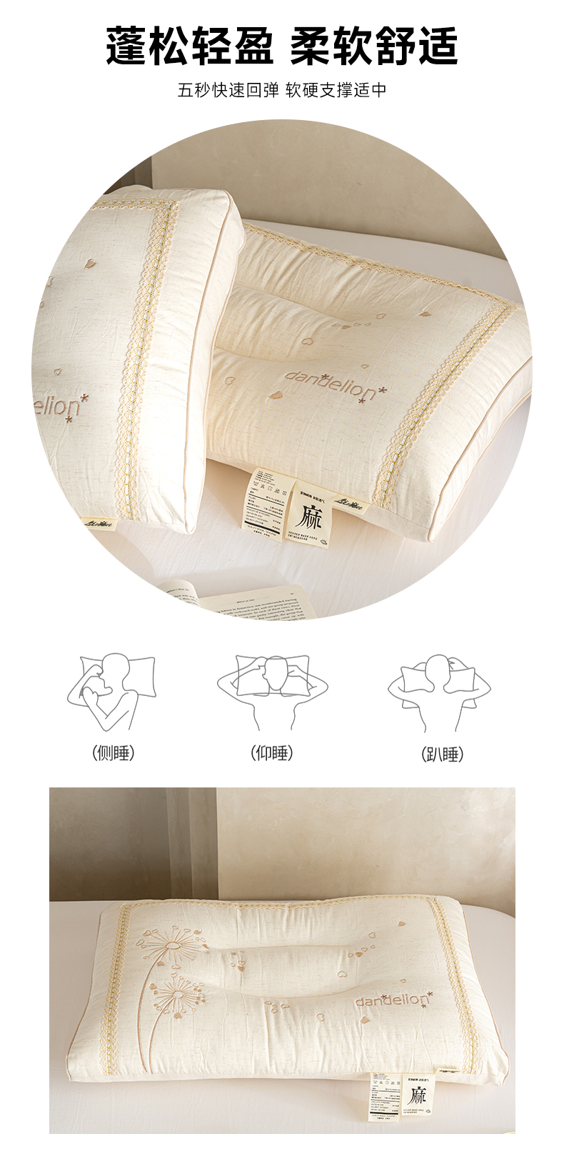 商品名称:(总)昕科 2026新款亚麻蒲公英枕-棉麻枕芯刺绣亚麻枕头