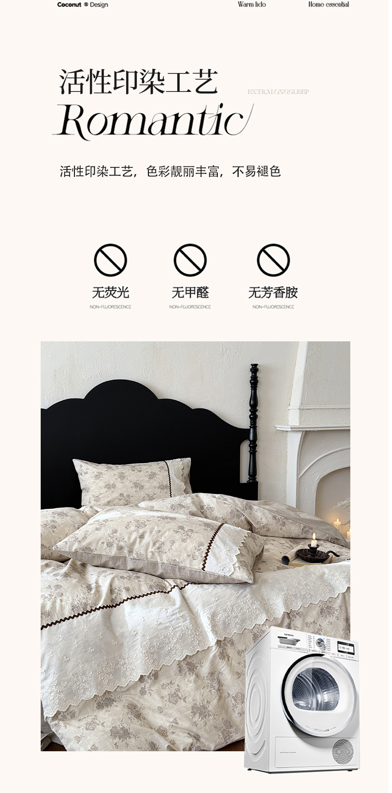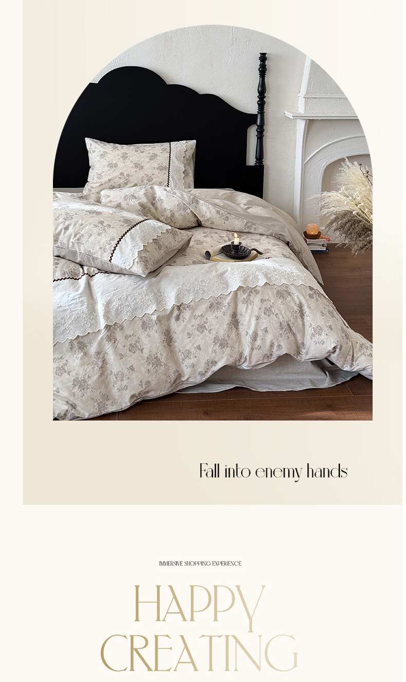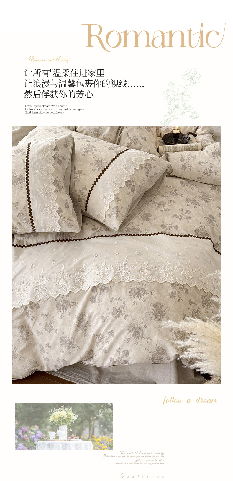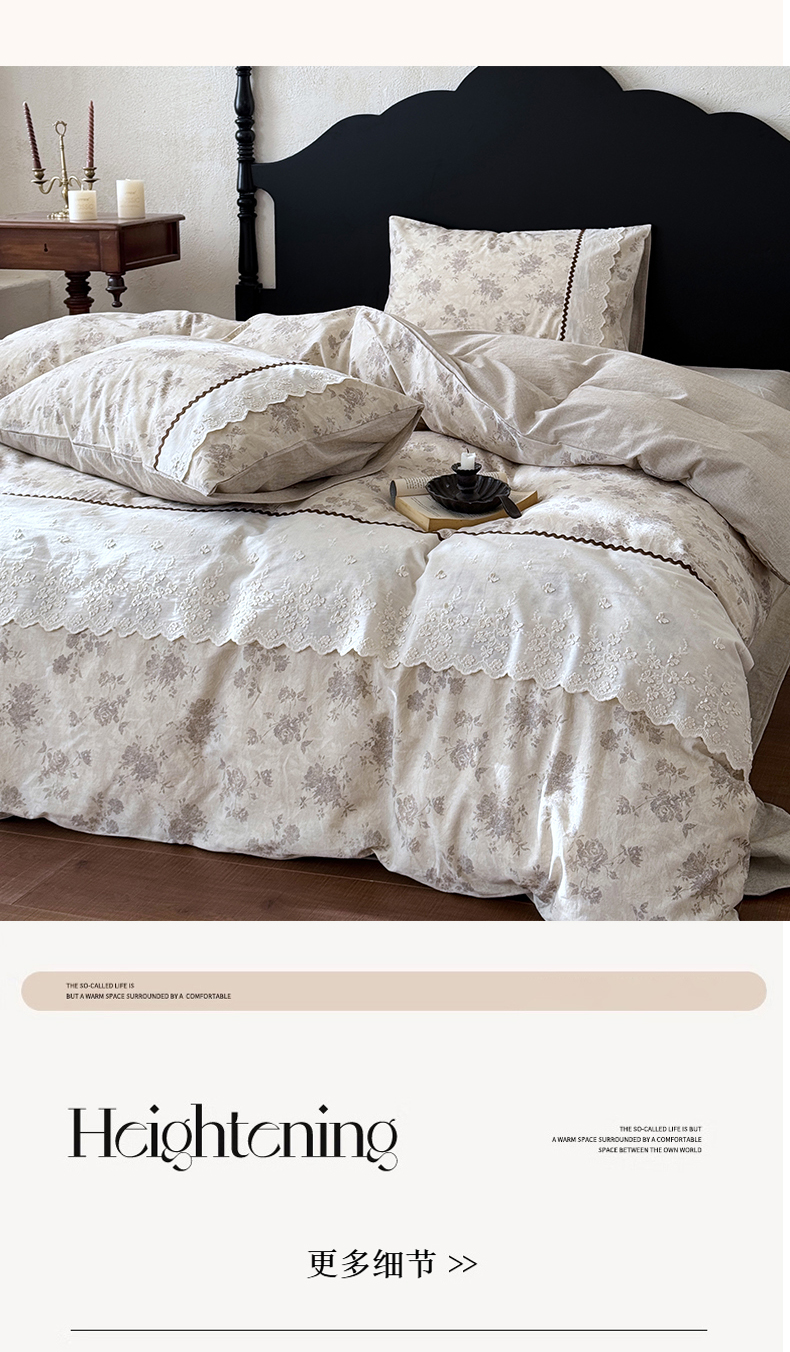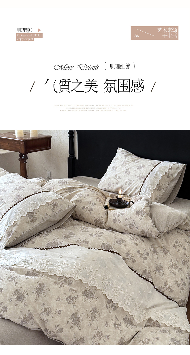 商品名称:淑女公社家纺 2026新款法式立体蝴蝶花边棉麻四件套 时雨 咖