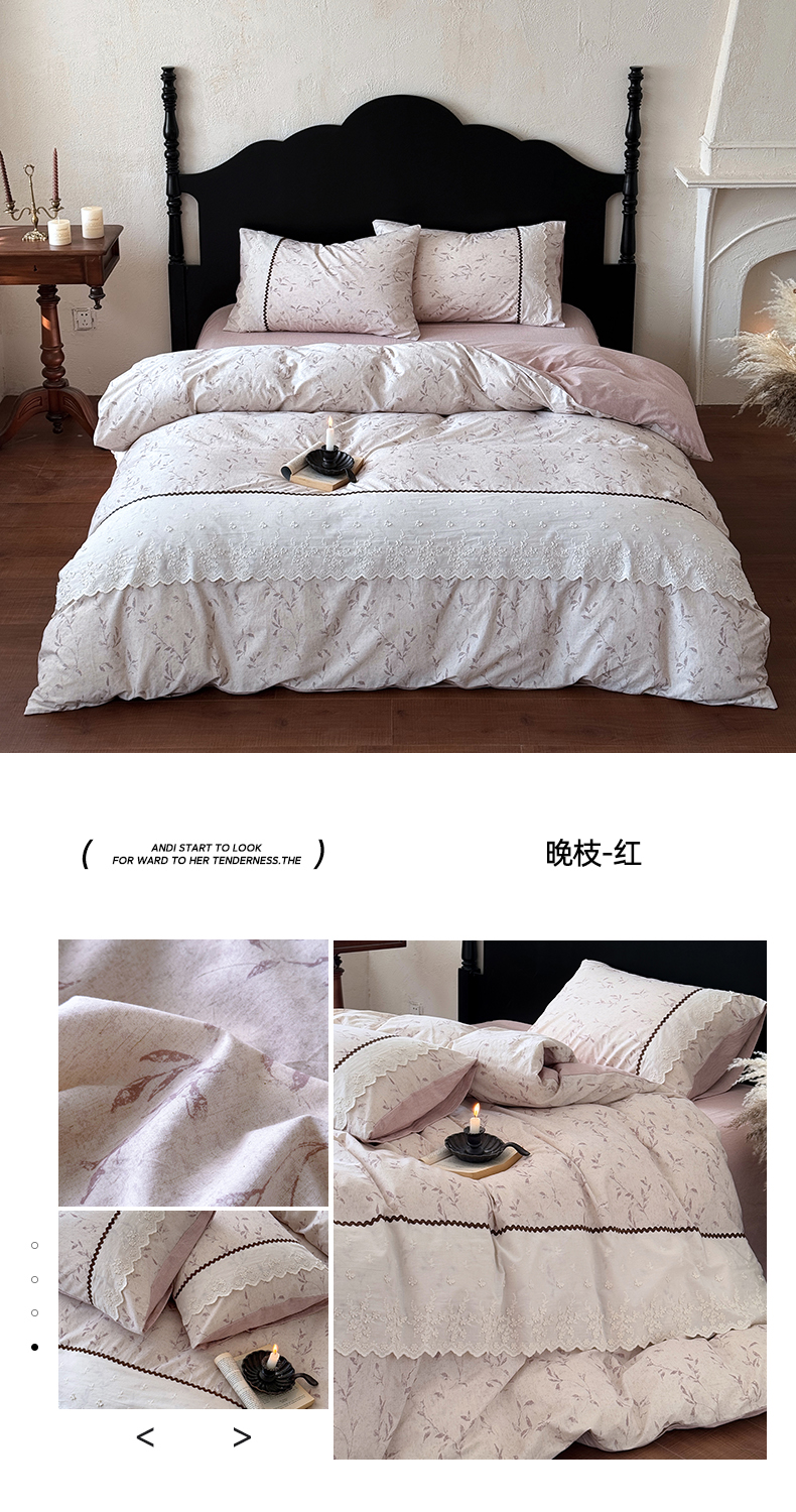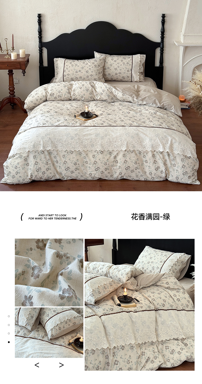 (总)淑女公社家纺 2026新款法式立体蝴蝶花边棉麻四件套,花香满园 绿,秋棠 红,时雨 咖,晚枝 红