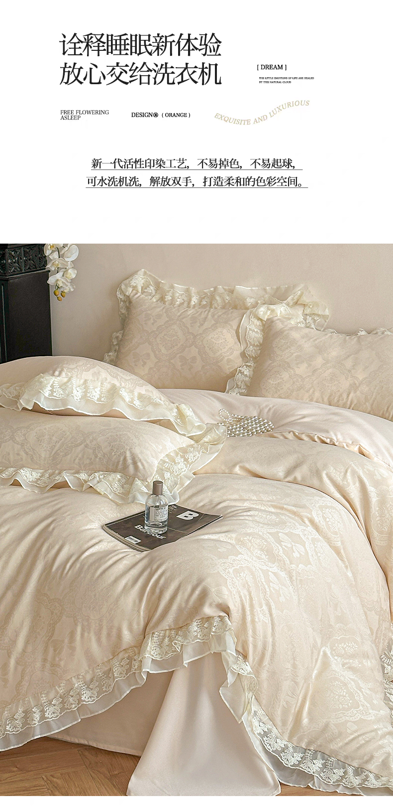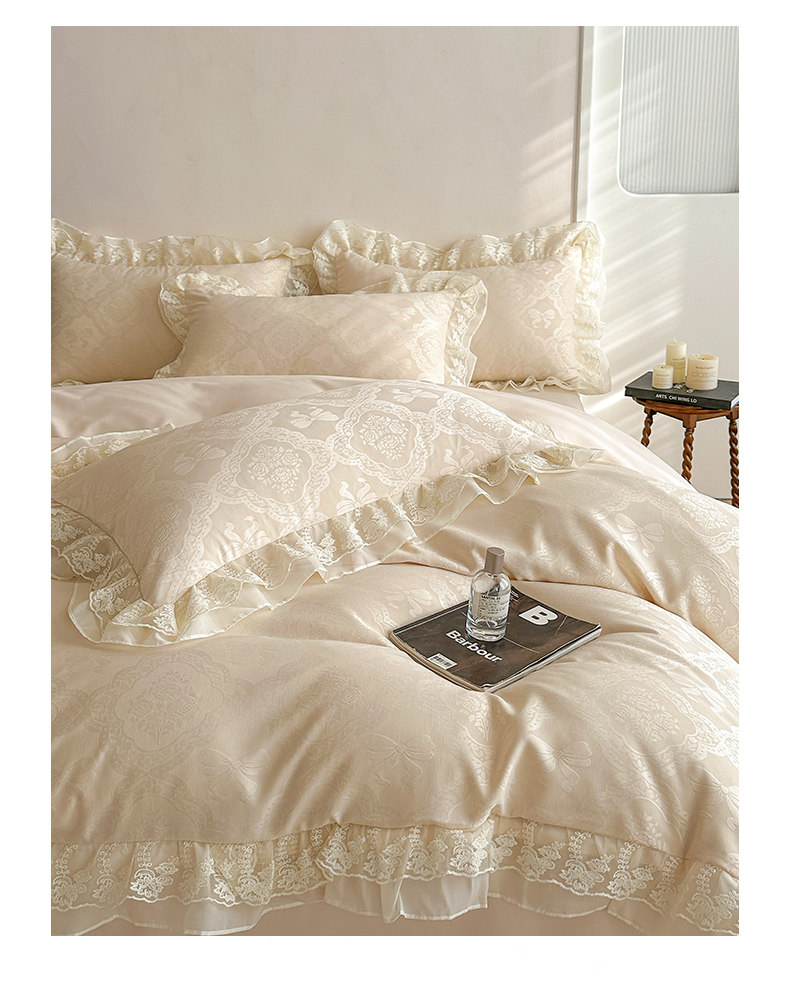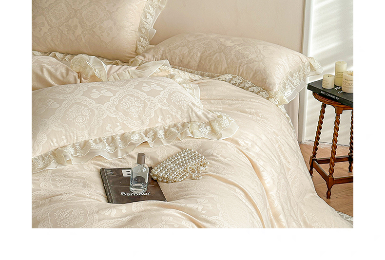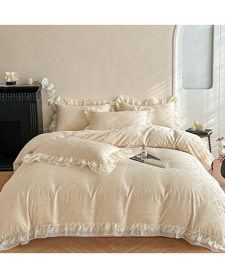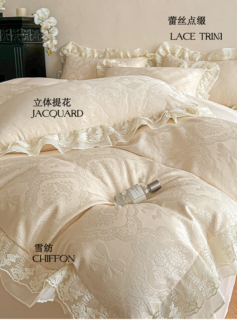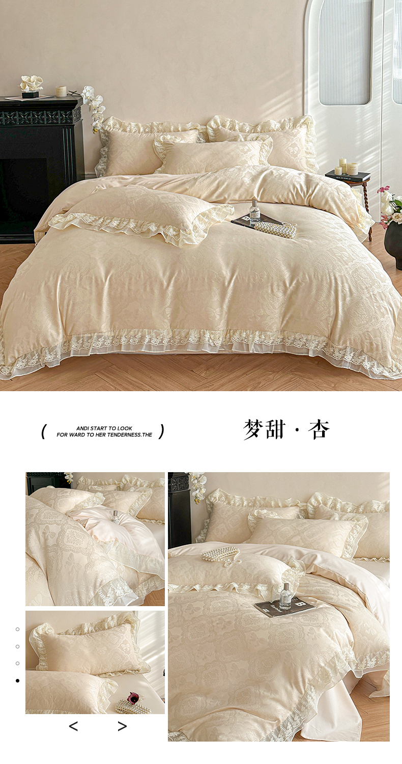 当前位置: 91家纺网 > 商品网购 > 床品套件 > 四件套 > 水洗棉四件套 > 你好美丽 2026新款水洗棉提花双层雪纺花边四件套-梦甜系列 梦甜杏