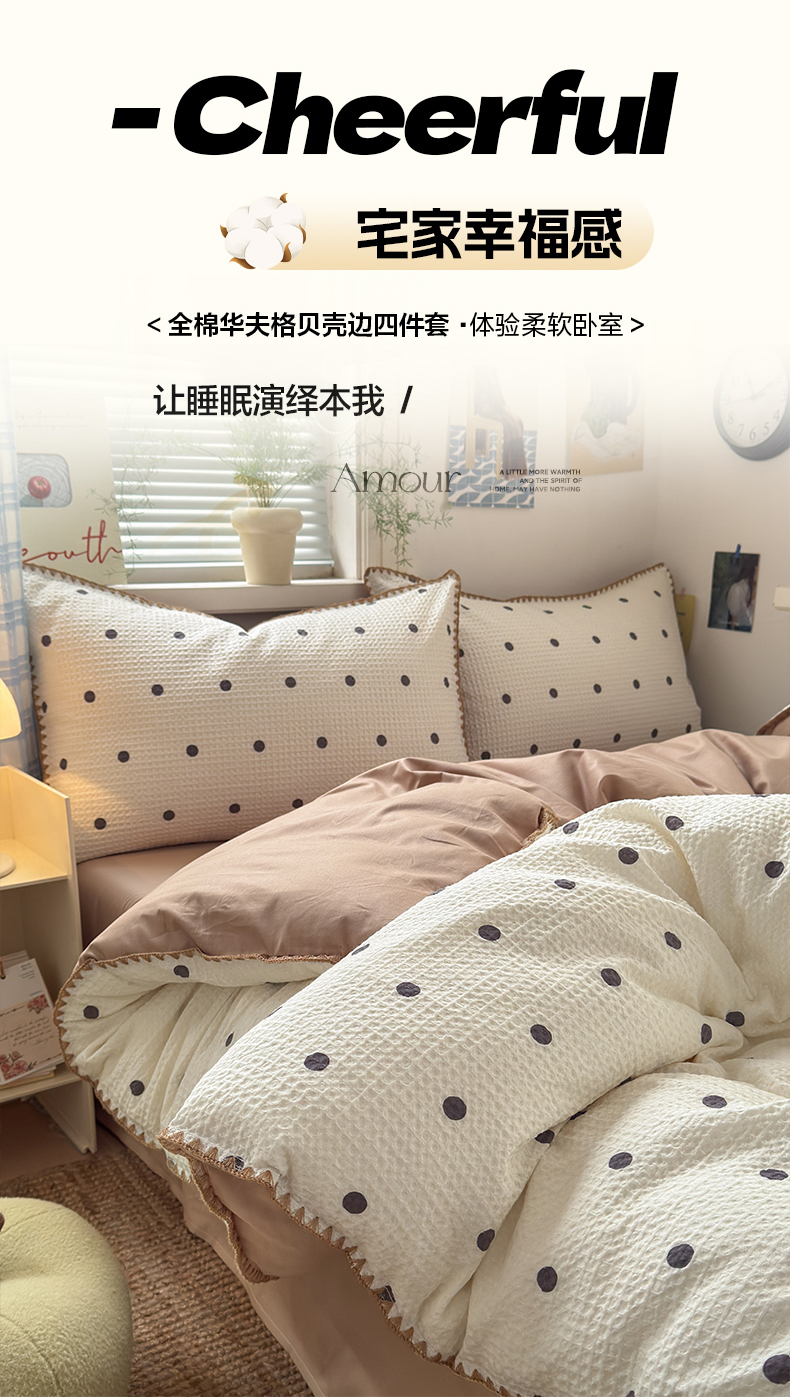 (总)曼之夏 2026新款A类全棉华夫格提花贝壳边四件套,风月-兰,光遇,简森-兰,卡布-白,萌动时光-咖,派克-灰,伊柠,云梦星河-兰