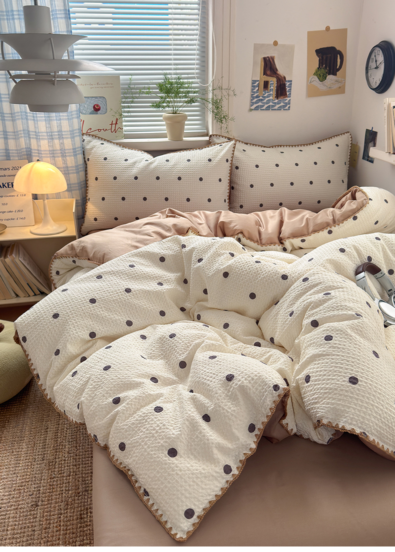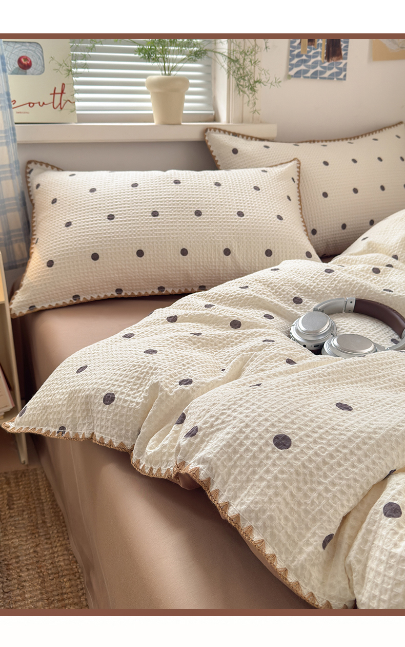 曼之夏 2026新款A类全棉华夫格提花贝壳边四件套 卡布-白