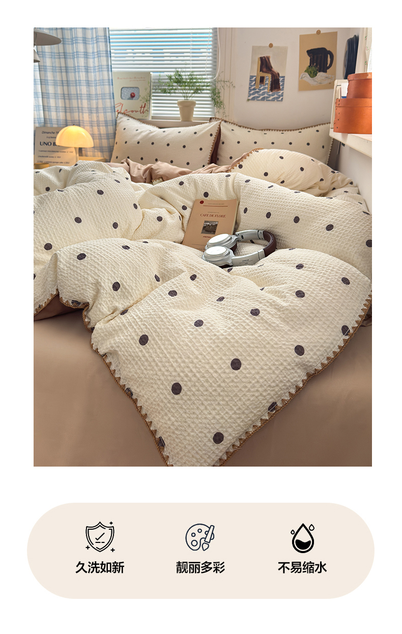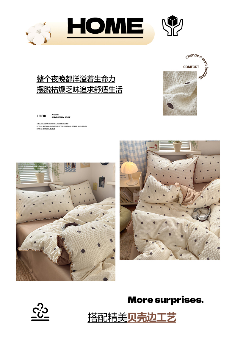商品名称:曼之夏 2026新款A类全棉华夫格提花贝壳边四件套 卡布-白