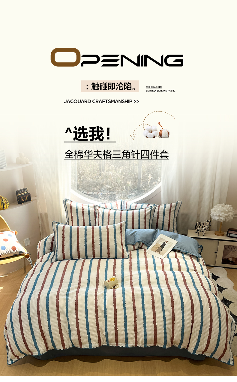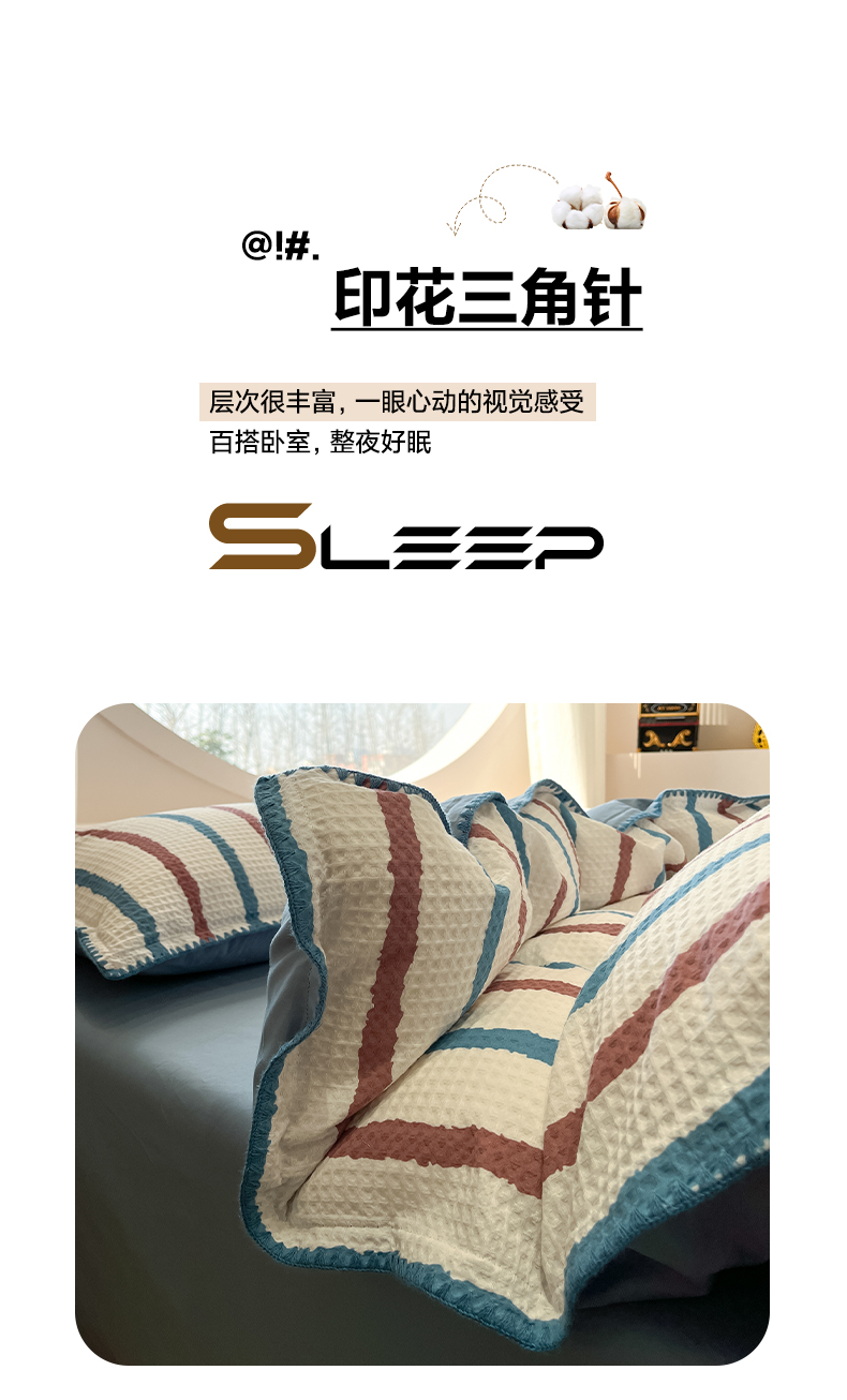 (总)如一 2026新款全棉华夫格三角针工艺四件套,彩心-紫,风月-蓝,风月-米,风月-紫,海盐-蓝,流光-蓝,泡芙-灰,柔然-粉,盛夏-绿