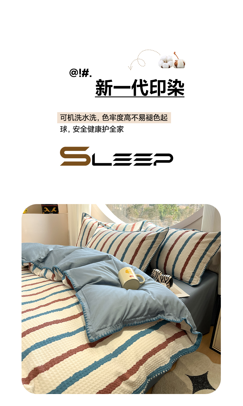 商品名称:如一 2026新款全棉华夫格三角针工艺四件套 海盐-蓝