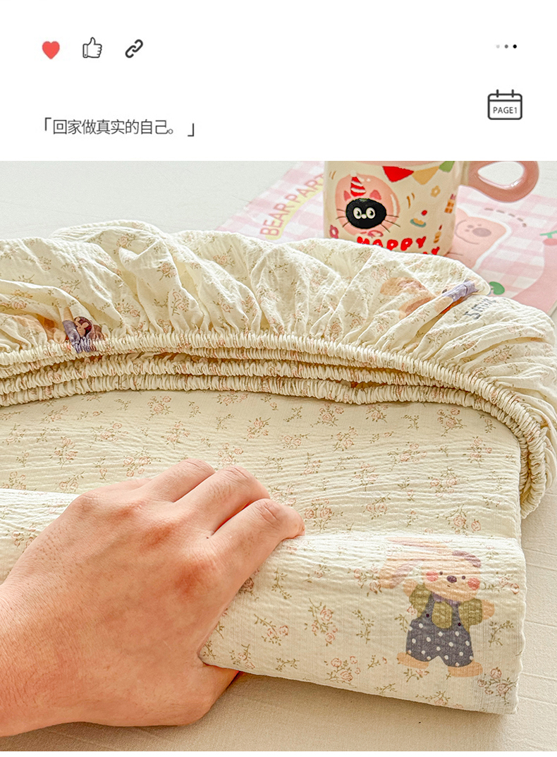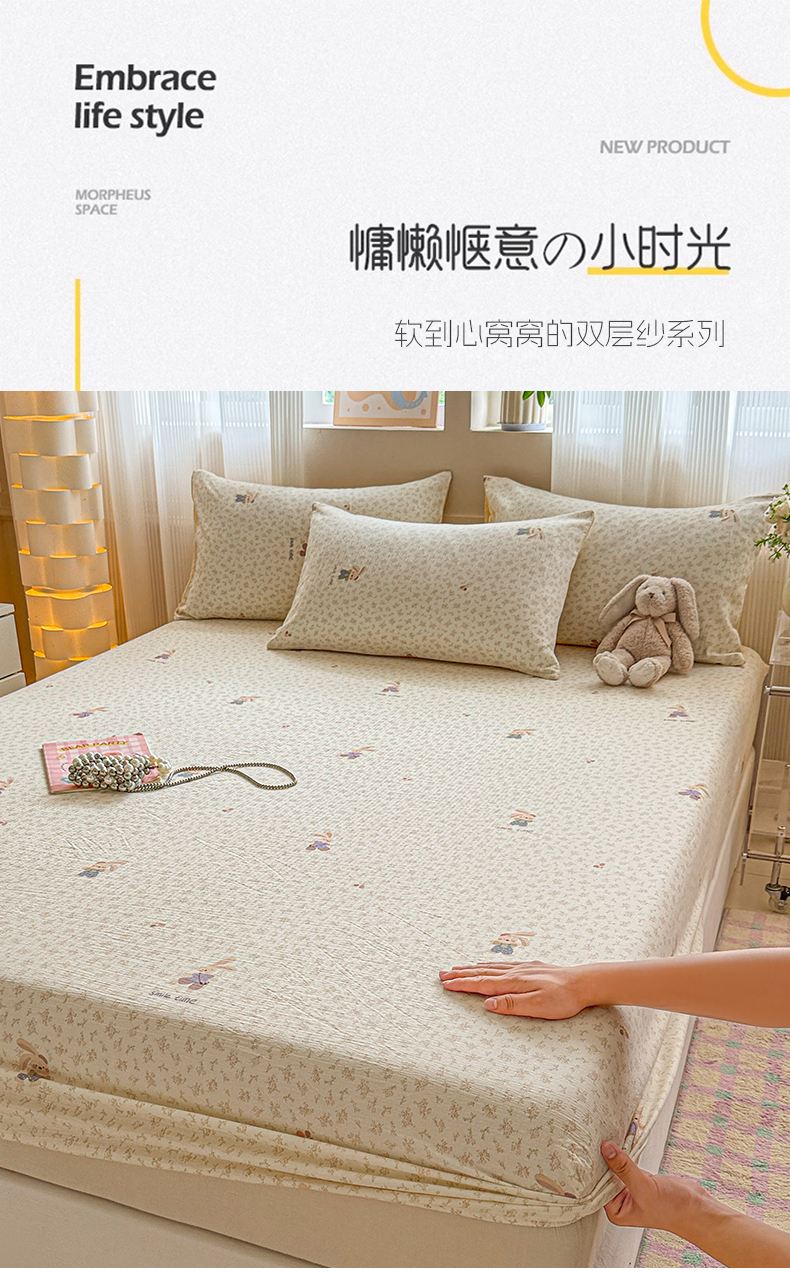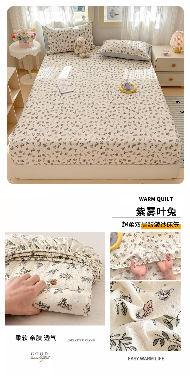 丽美人家纺 2026新款A类柔软双层皱皱纱印花单床笠床笠单件 乐园
