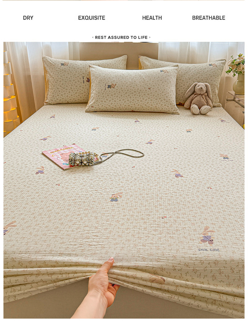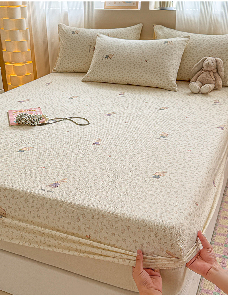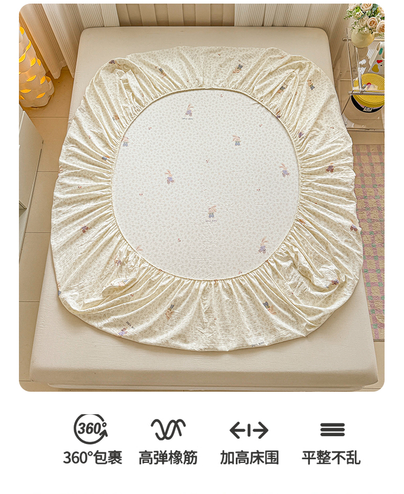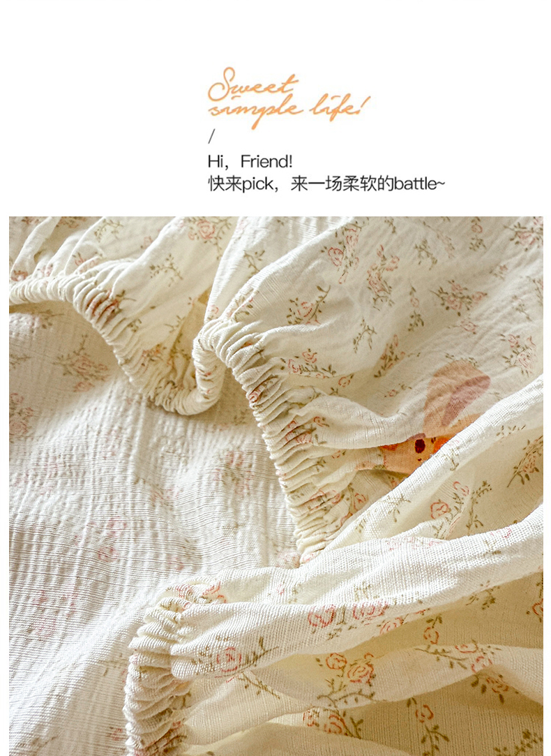 丽美人家纺 2026新款A类柔软双层皱皱纱印花单床笠床笠单件 乐园