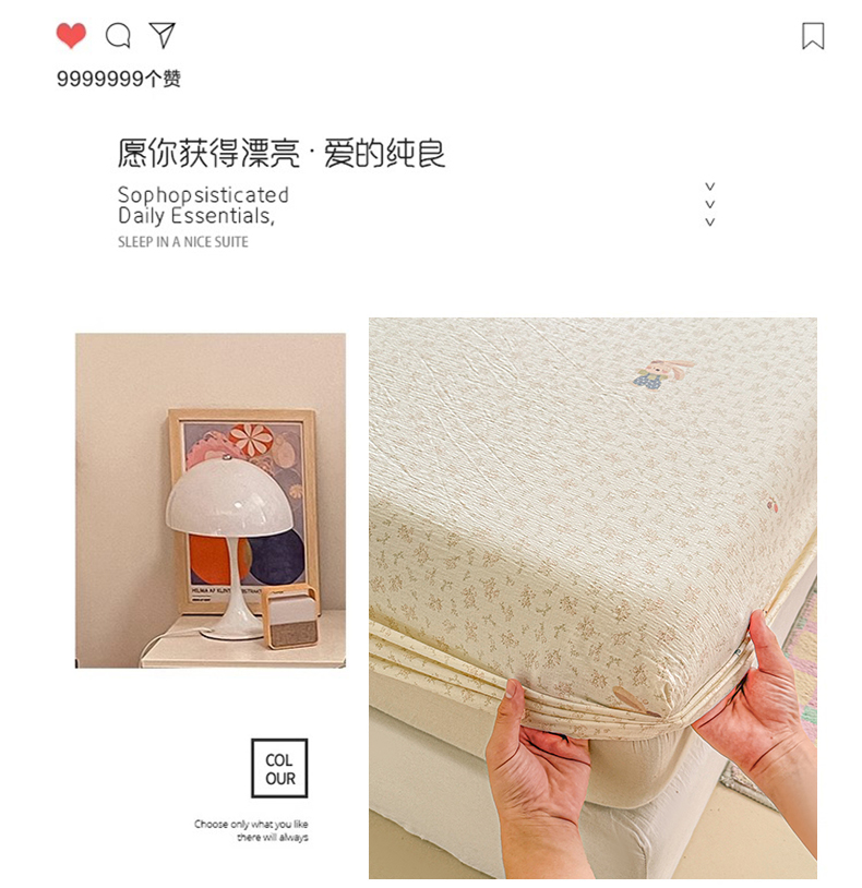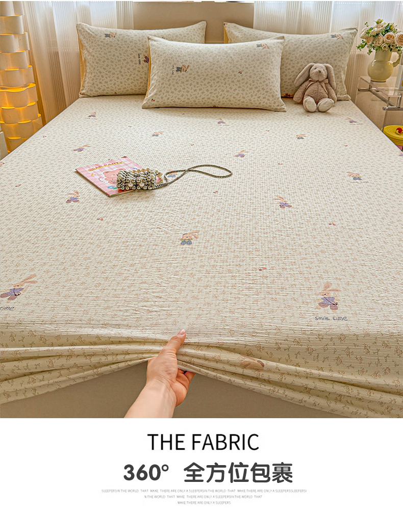 • 91家纺网 家纺一手货源 找家纺 (总)丽美人家纺 2026新款双层皱皱纱大豆夹棉床笠单床笠床笠单件,JM花开漫漫,JM贝拉,JM布兰卡,JM粉格猫咪,JM格仔萌宠,JM可爱小狗,JM腊肠狗,JM乐园,JM玛丽,JM时光,JM月境骑踪,JM紫雾叶兔