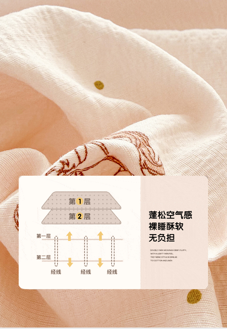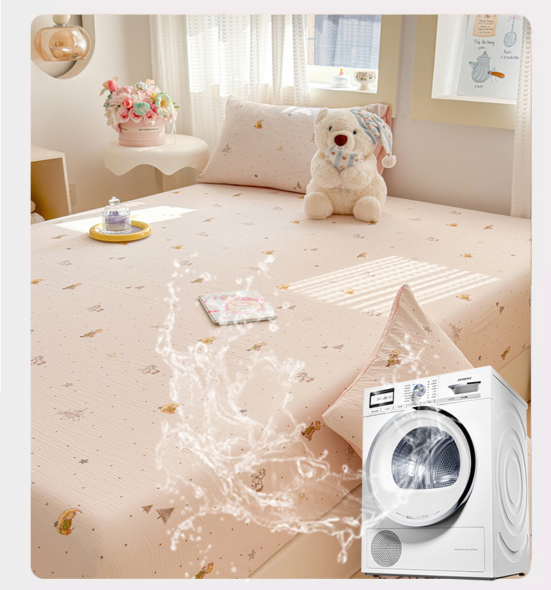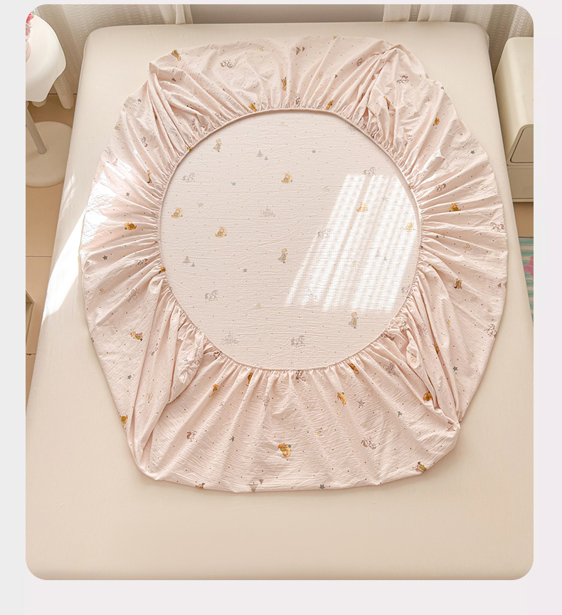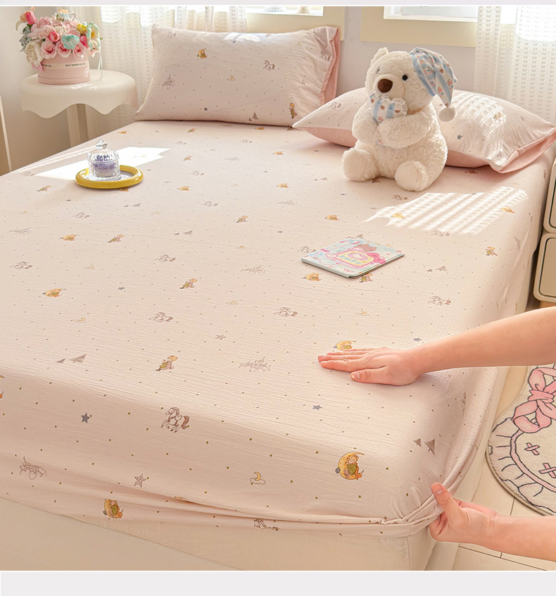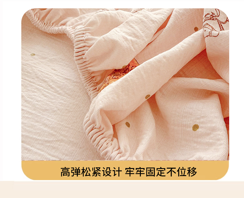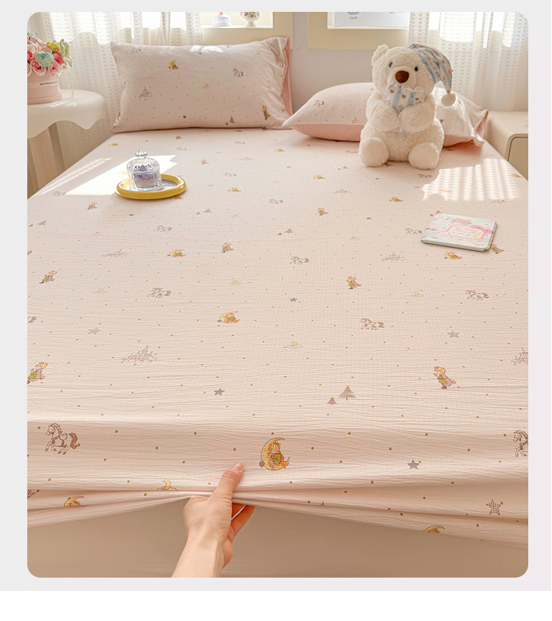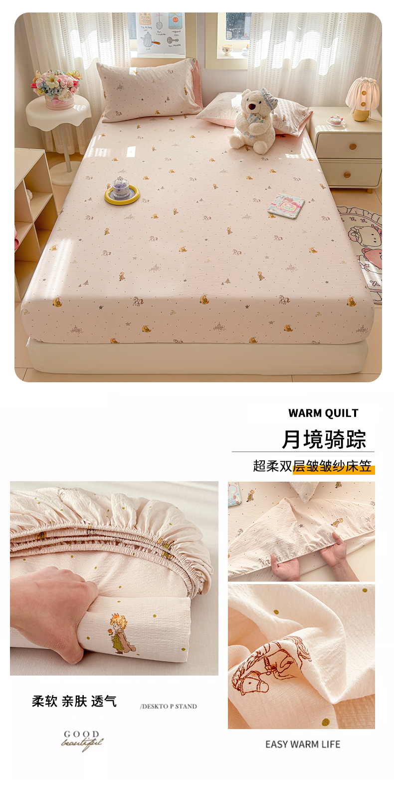 丽美人家纺 2026新款A类柔软双层皱皱纱印花单床笠床笠单件 月境骑踪
