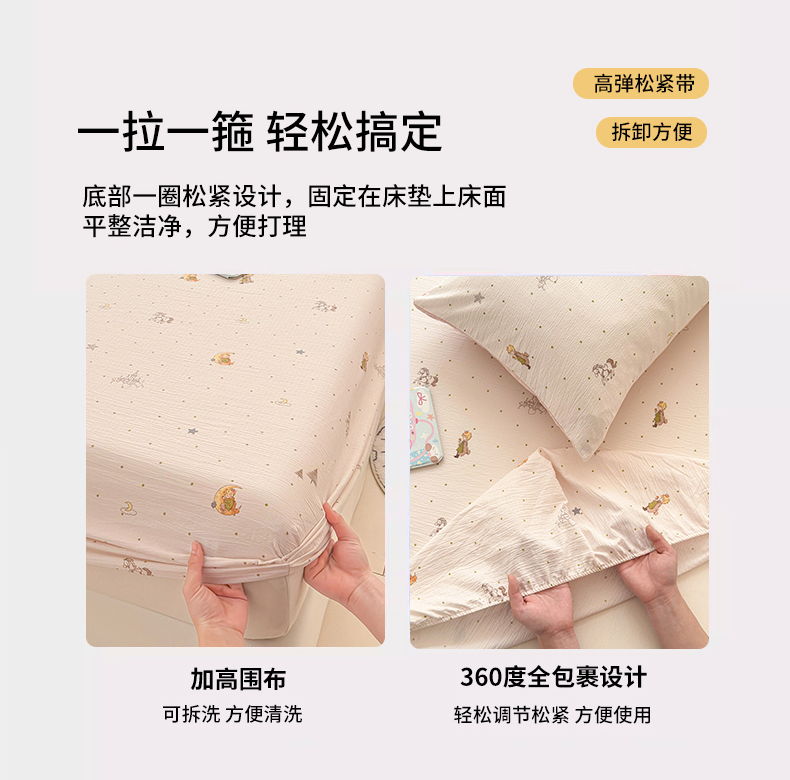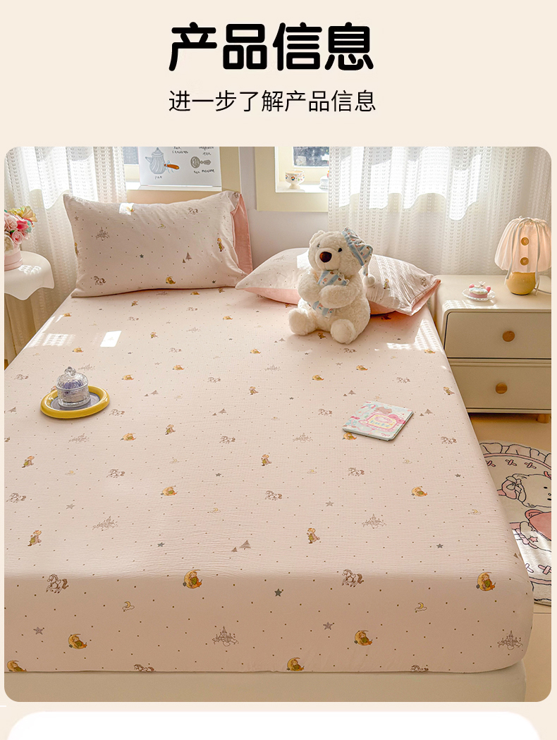 (总)丽美人家纺 2026新款双层皱皱纱大豆夹棉床笠单床笠床笠单件,JM花开漫漫,JM贝拉,JM布兰卡,JM粉格猫咪,JM格仔萌宠,JM可爱小狗,JM腊肠狗,JM乐园,JM玛丽,JM时光,JM月境骑踪,JM紫雾叶兔