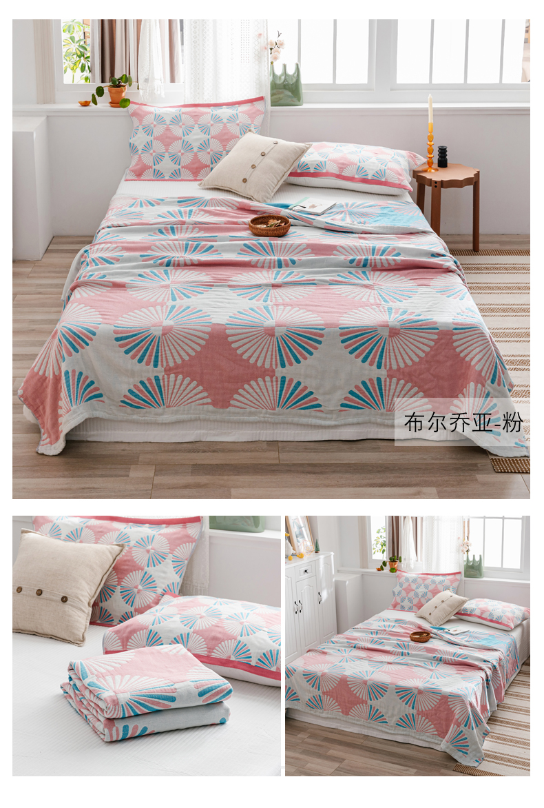 商品名称:朴尔家纺-毛巾被 2026新款波西米亚风全棉四层纱布毛巾被-朴尔经典款常年备货 克莱德-粉