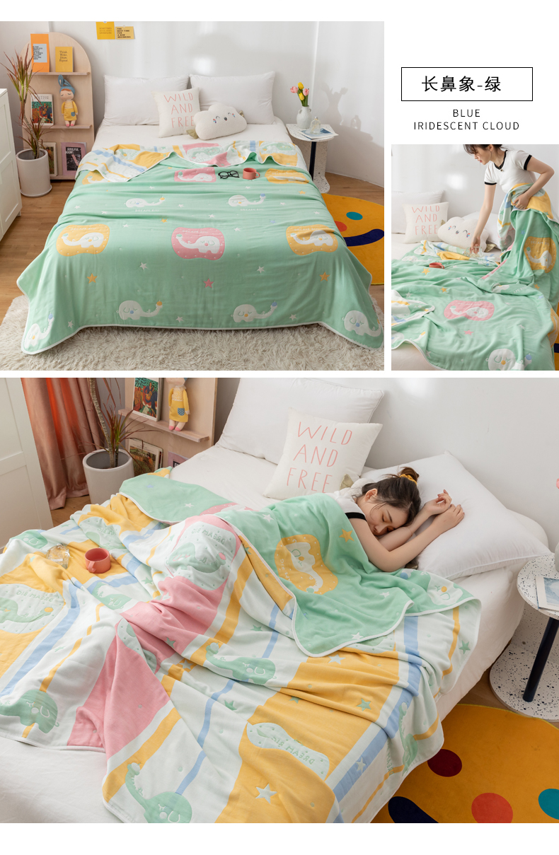 朴尔家纺-毛巾被 2026新款卡漫风格全棉六层纱毛巾被 长鼻象-粉