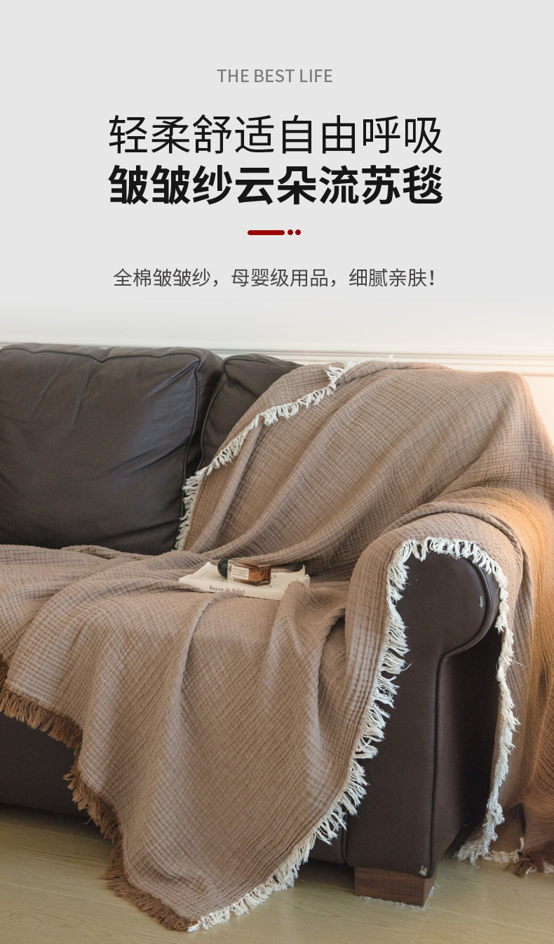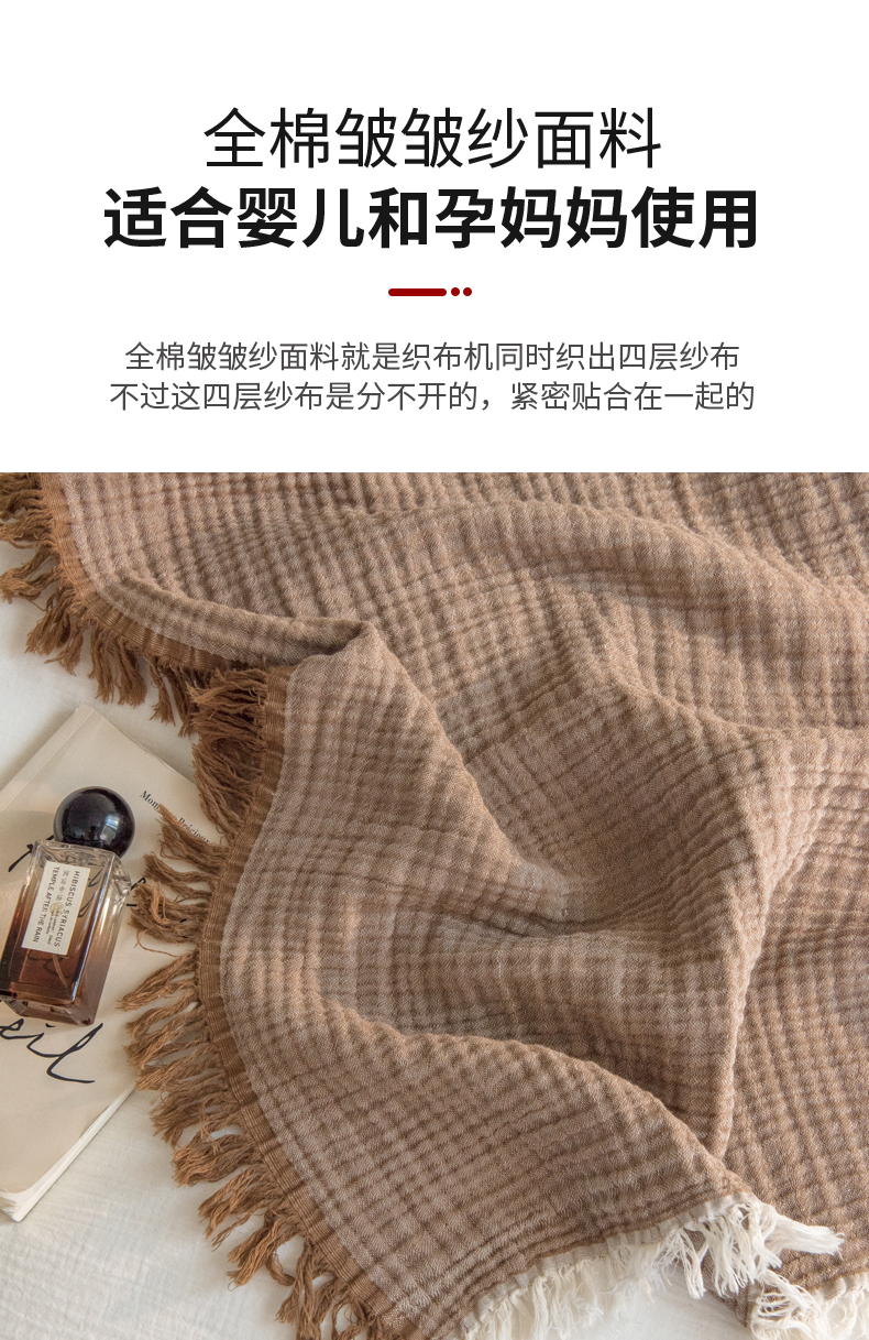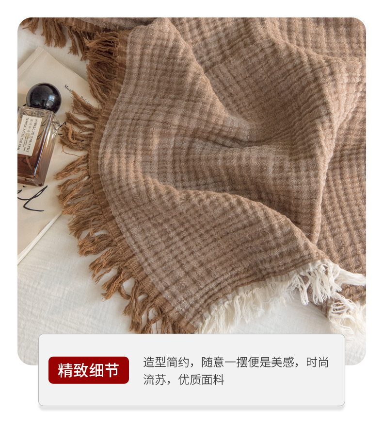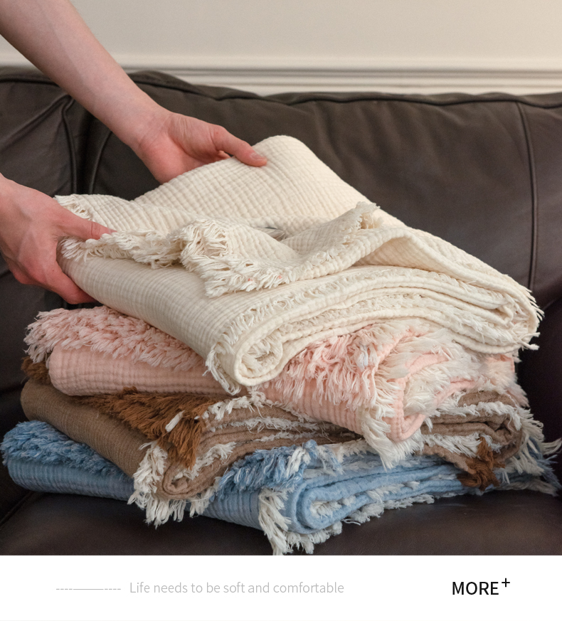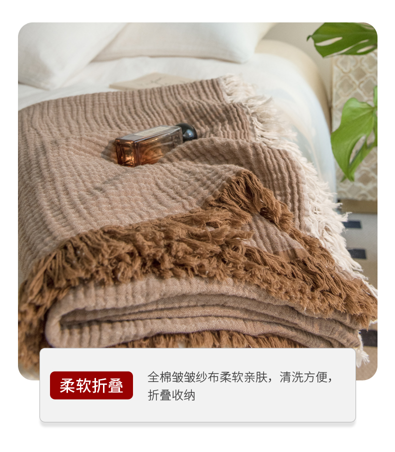 商品名称:(总)席世家 2026新款100%全棉纯棉皱皱纱云朵流苏毯毯子