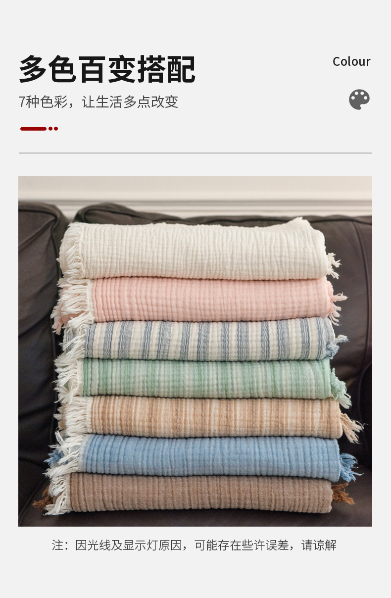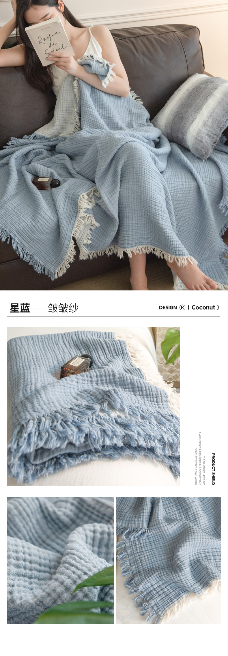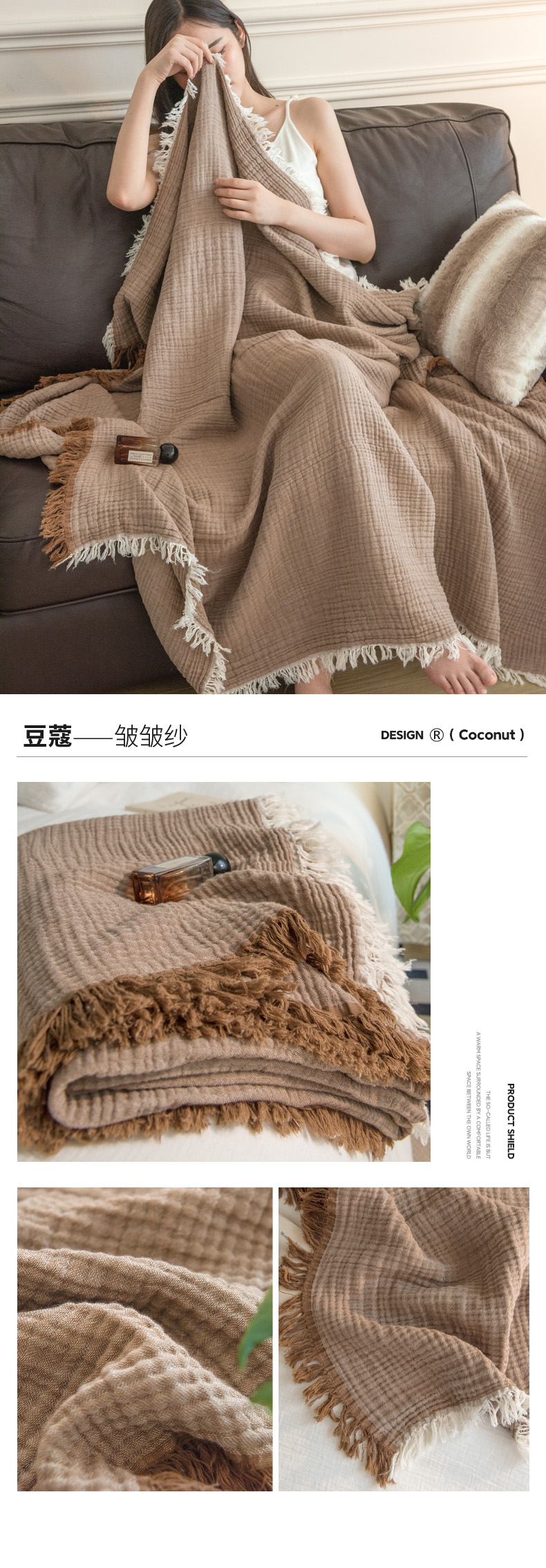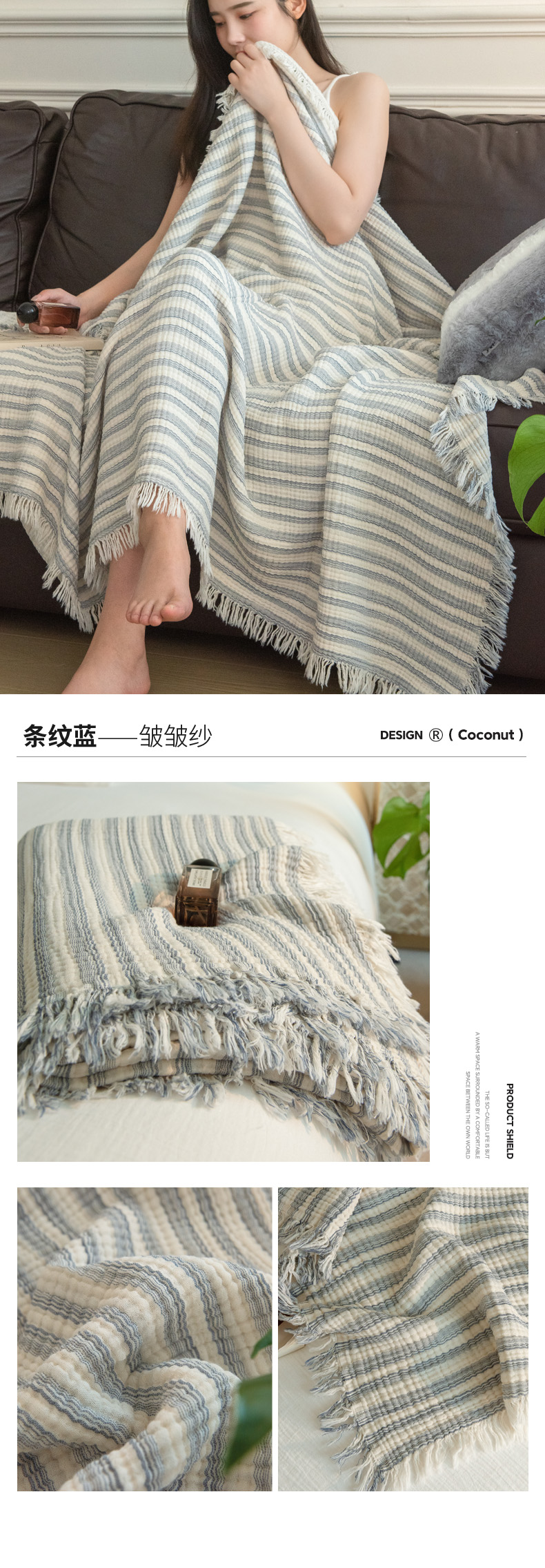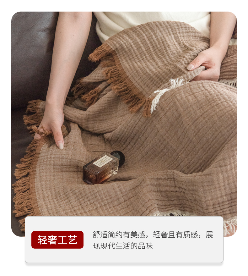 商品名称:(总)席世家 2026新款100%全棉纯棉皱皱纱云朵流苏毯毯子