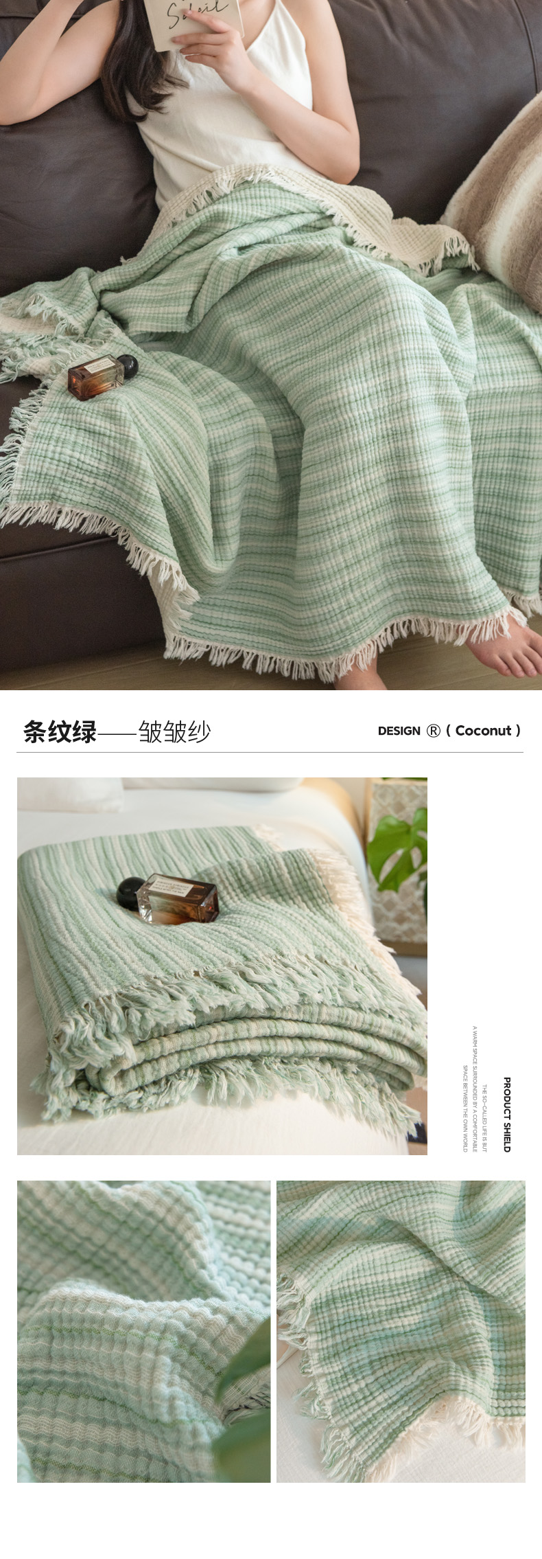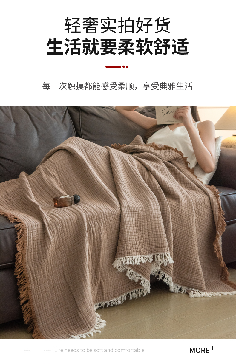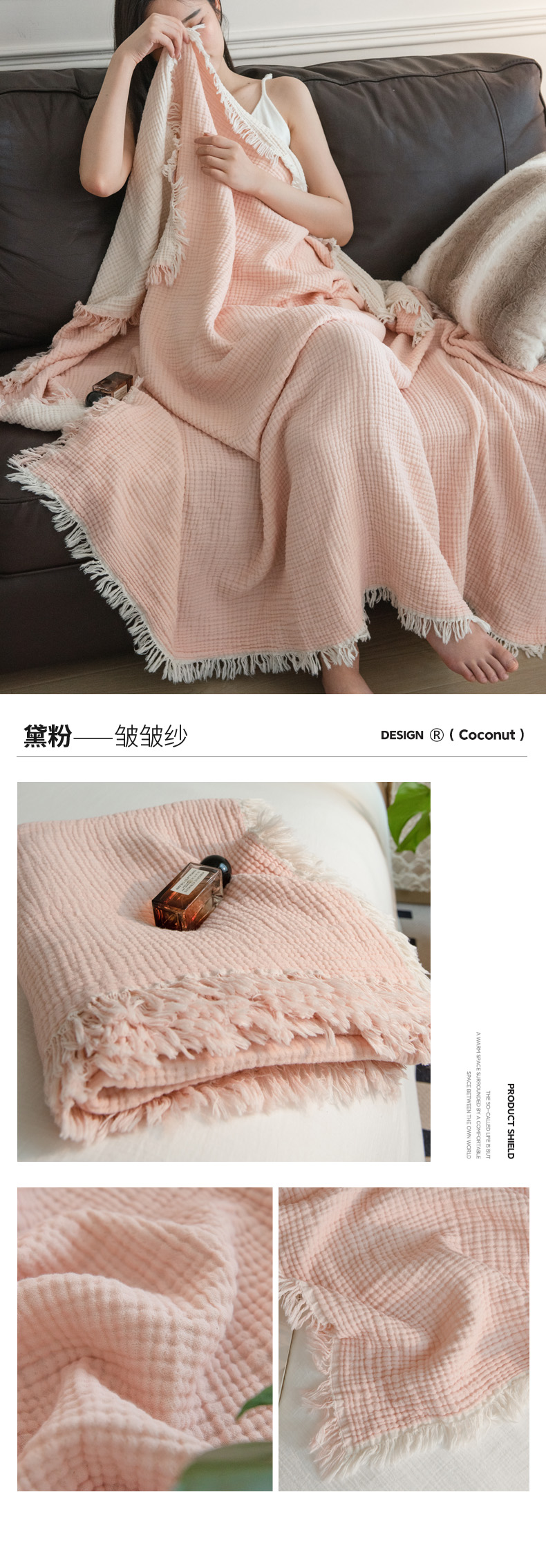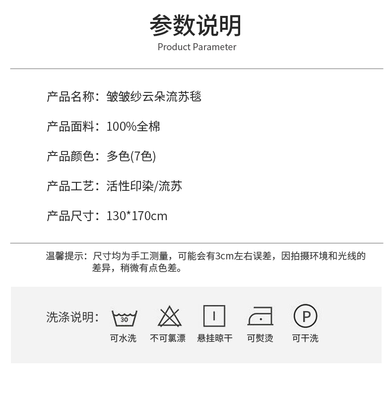 商品名称:(总)席世家 2026新款100%全棉纯棉皱皱纱云朵流苏毯毯子