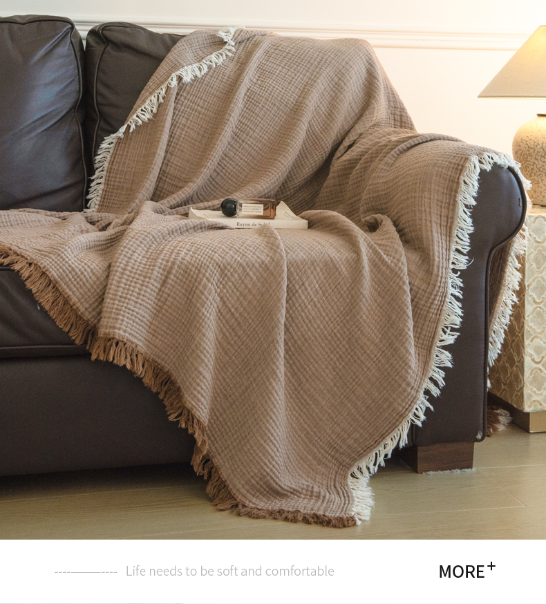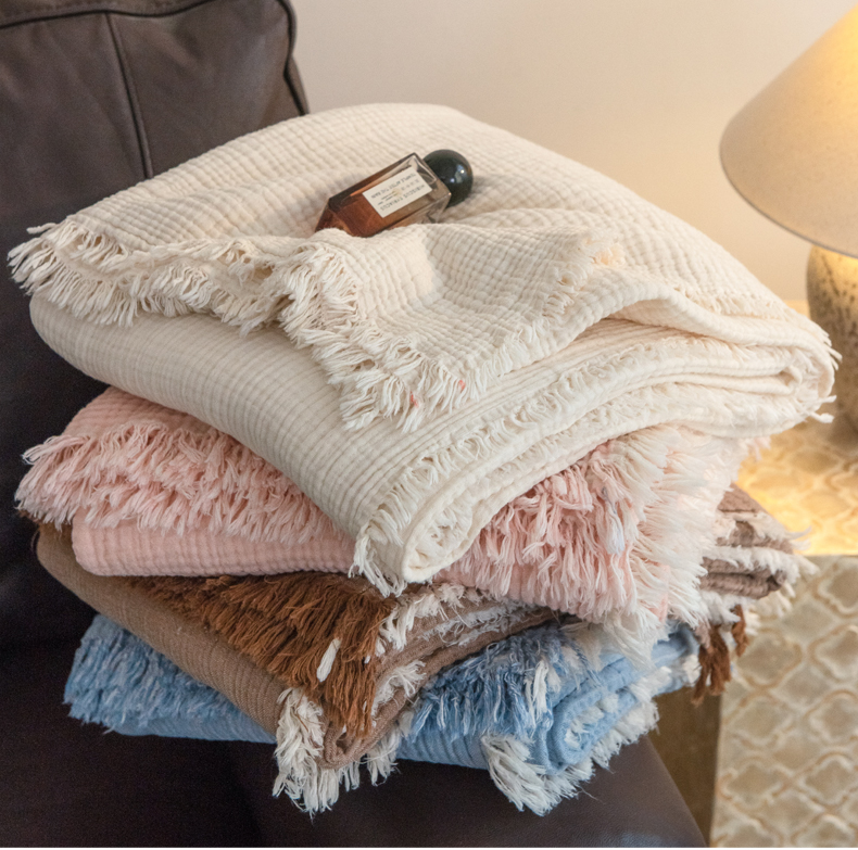 (总)席世家 2026新款100%全棉纯棉皱皱纱云朵流苏毯毯子