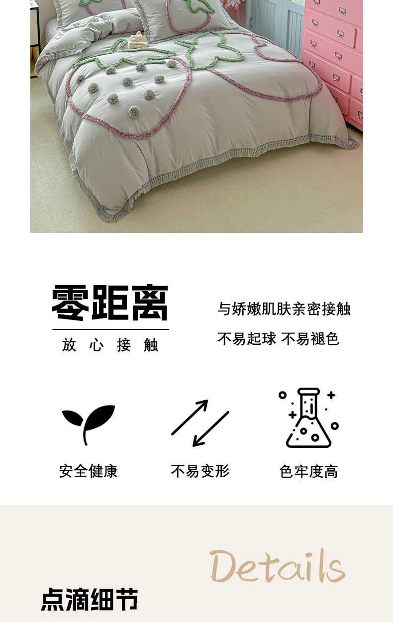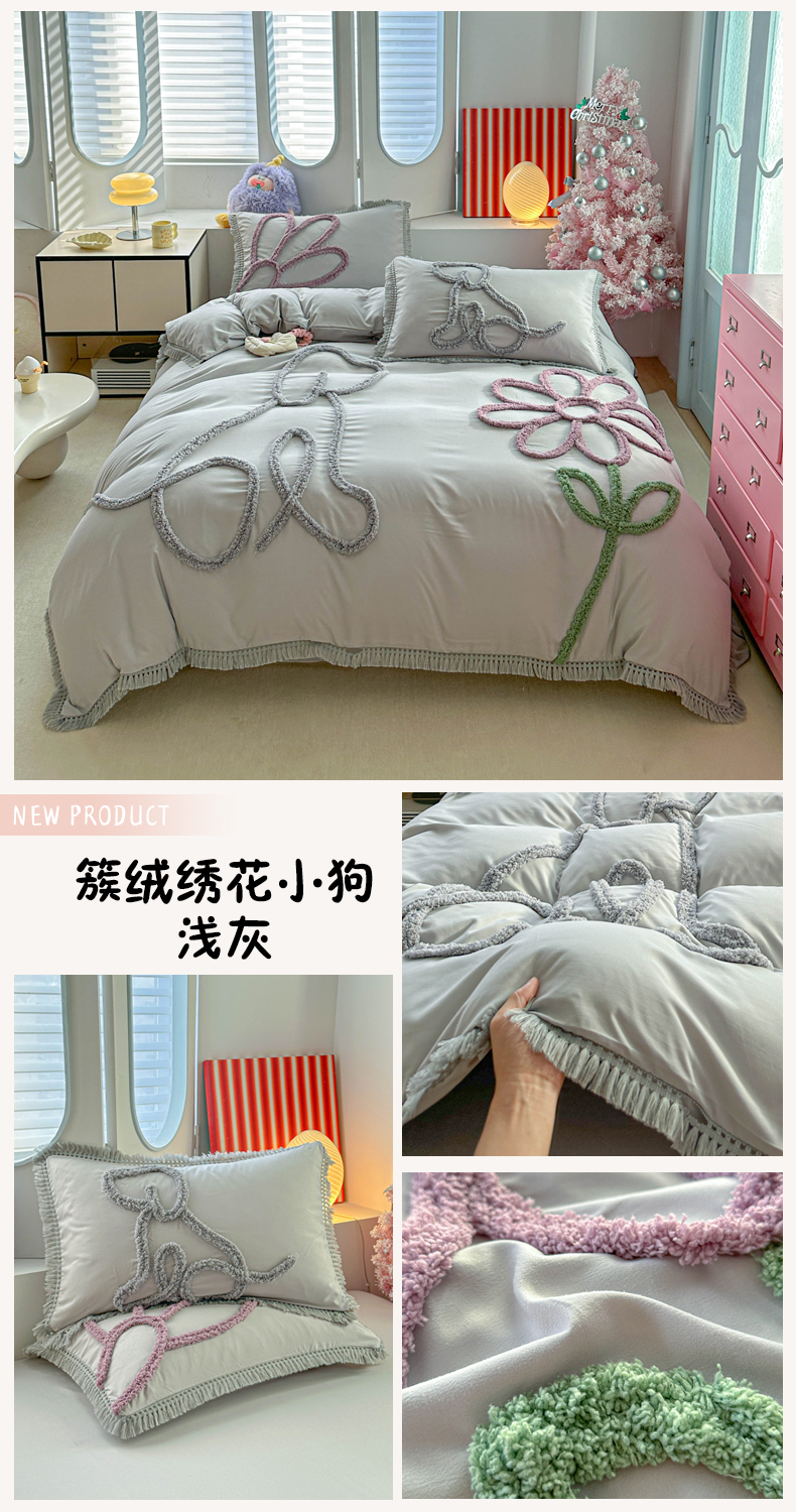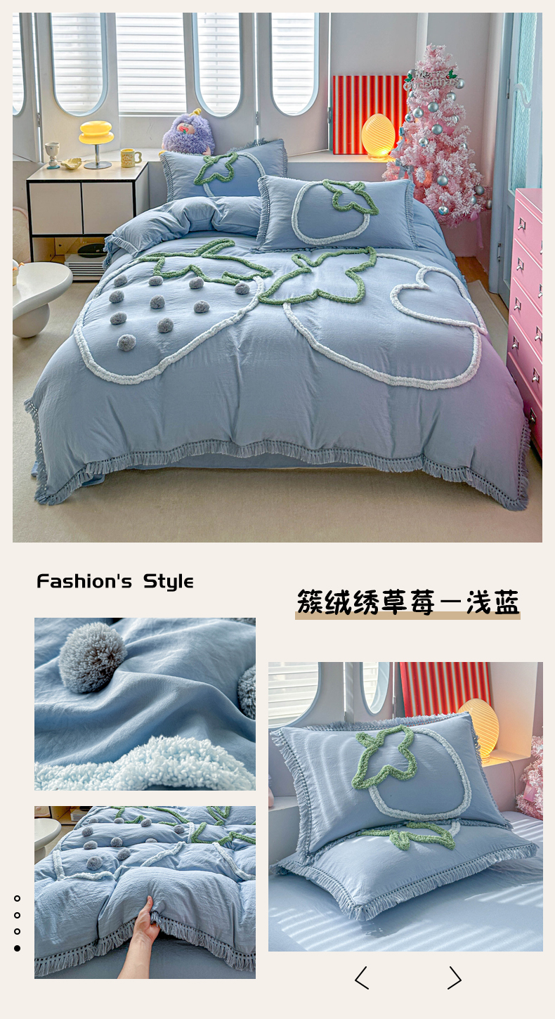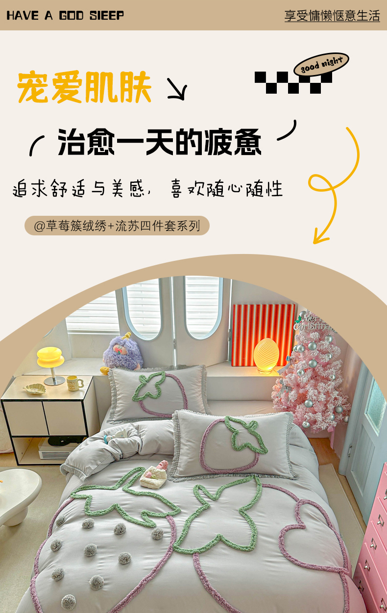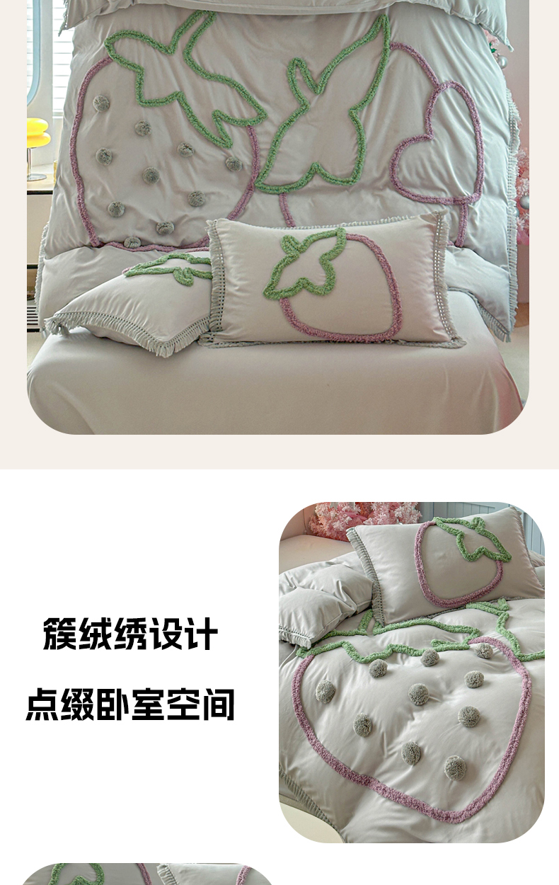 当前位置: 91家纺网 > 商品网购 > 床品套件 > 四件套 > 其它四件套 > 缘生活 2026新款立体簇绒绣流苏四件套 大爱草莓-浅灰