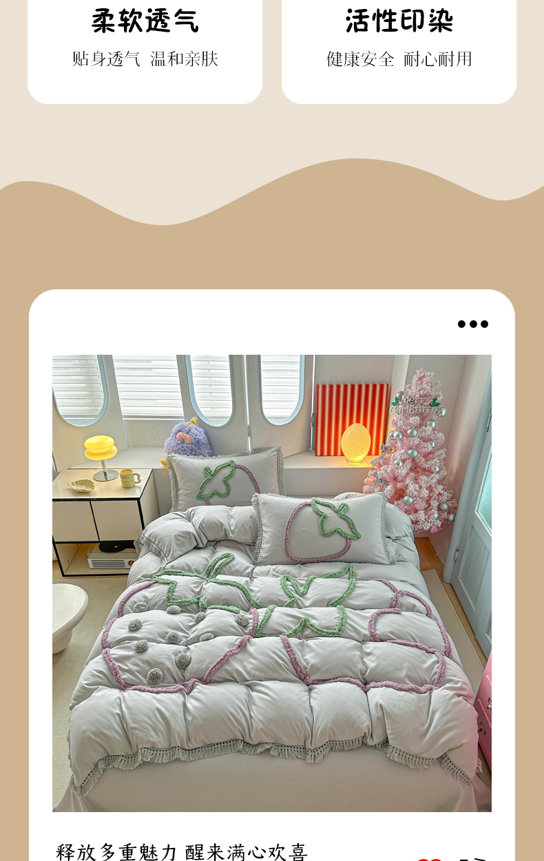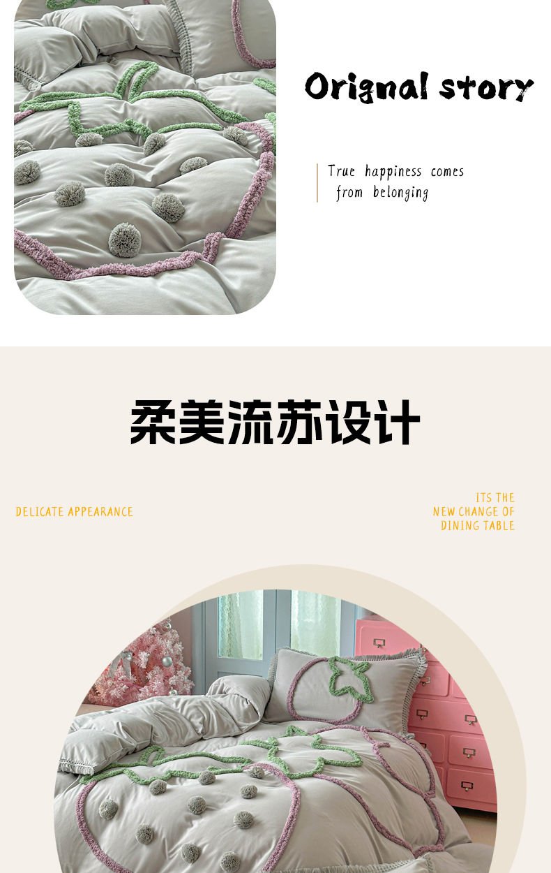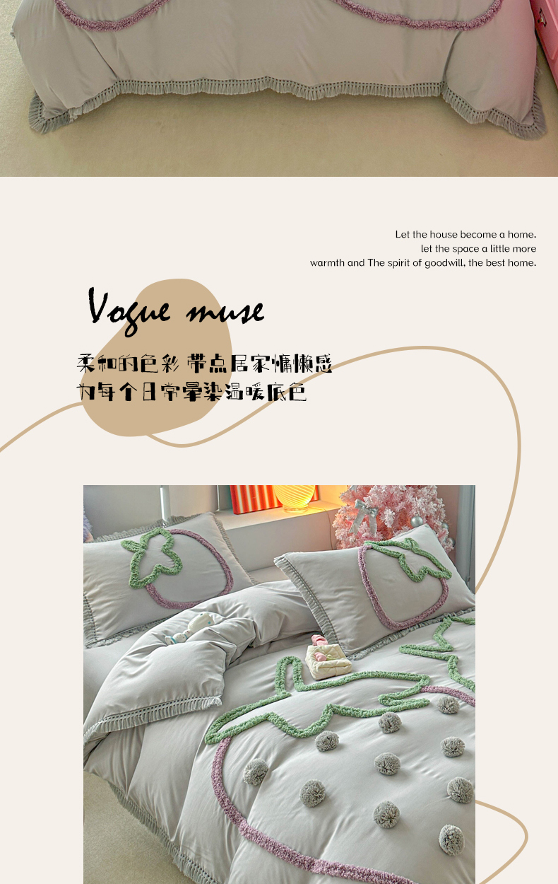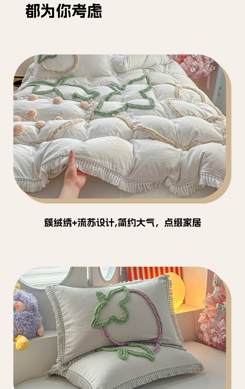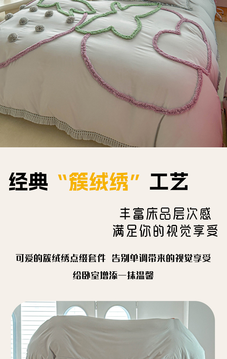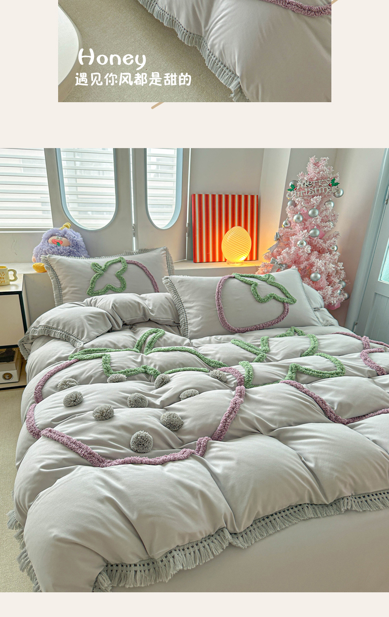 当前位置: 91家纺网 > 商品网购 > 床品套件 > 四件套 > 其它四件套 > 缘生活 2026新款立体簇绒绣流苏四件套 大爱草莓-浅灰