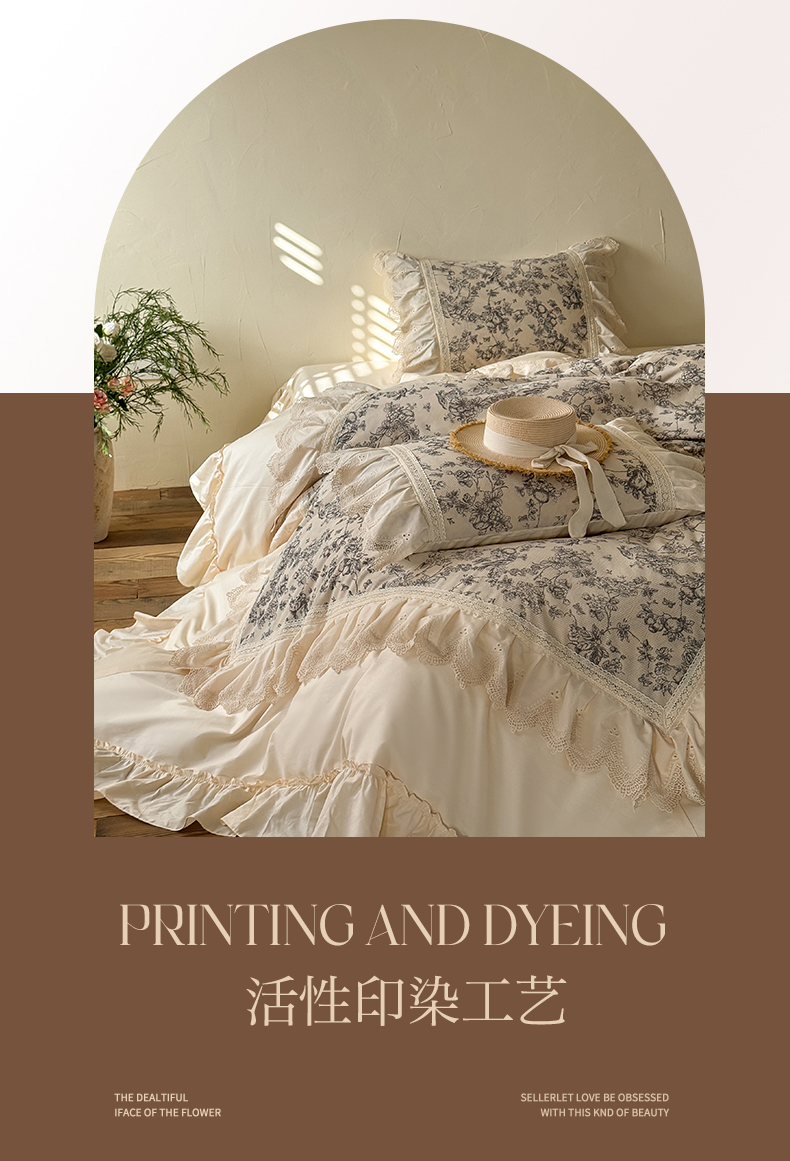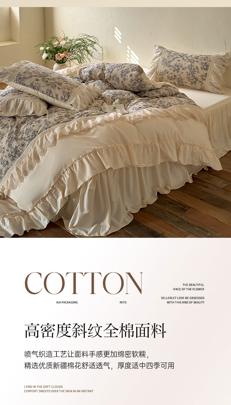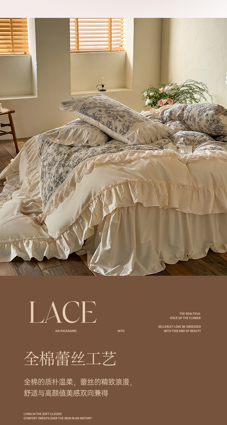 (总)惯盈家纺2025新款全棉复古蕾丝床裙款四件套南栀系列(含买家秀),南栀-枫咖,南栀-云蓝