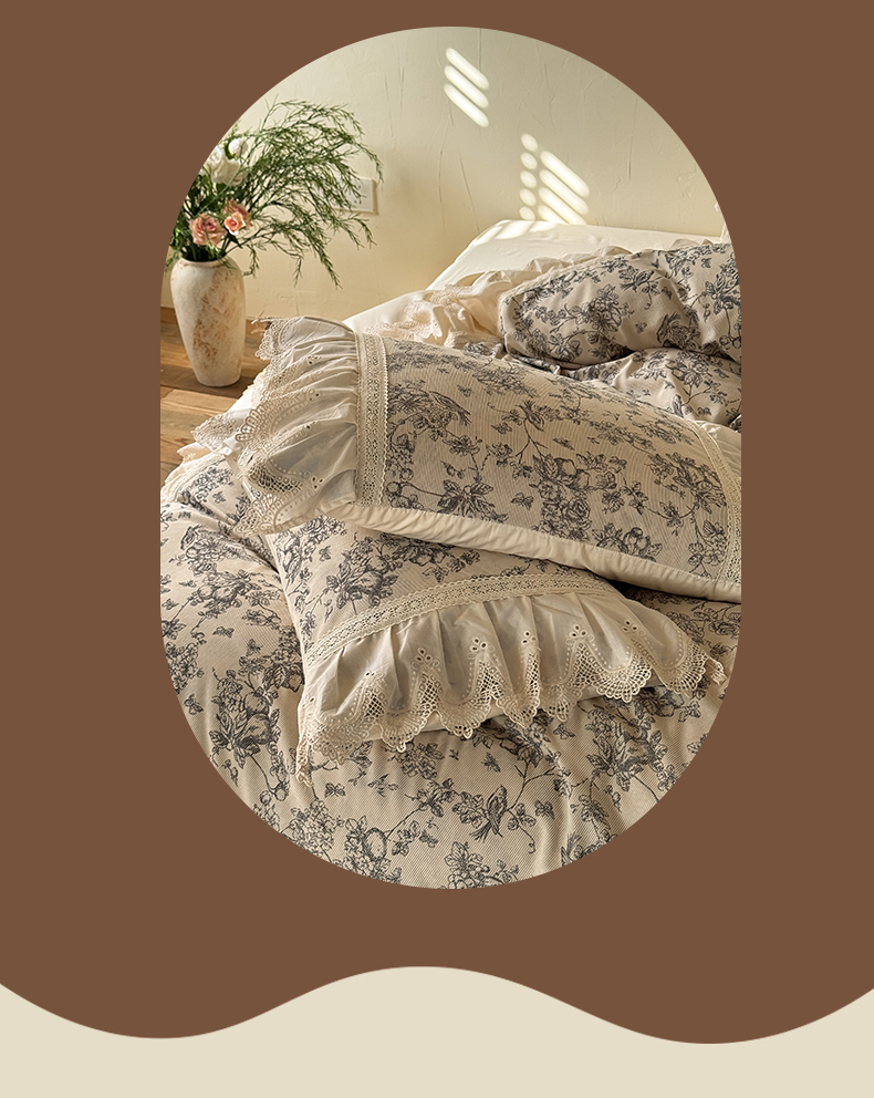 (总)惯盈家纺 2025新款法式镂空花边全棉四件套-黎雾沉香【含买家秀】,黎雾沉香-梨褐,黎雾沉香-烟墨