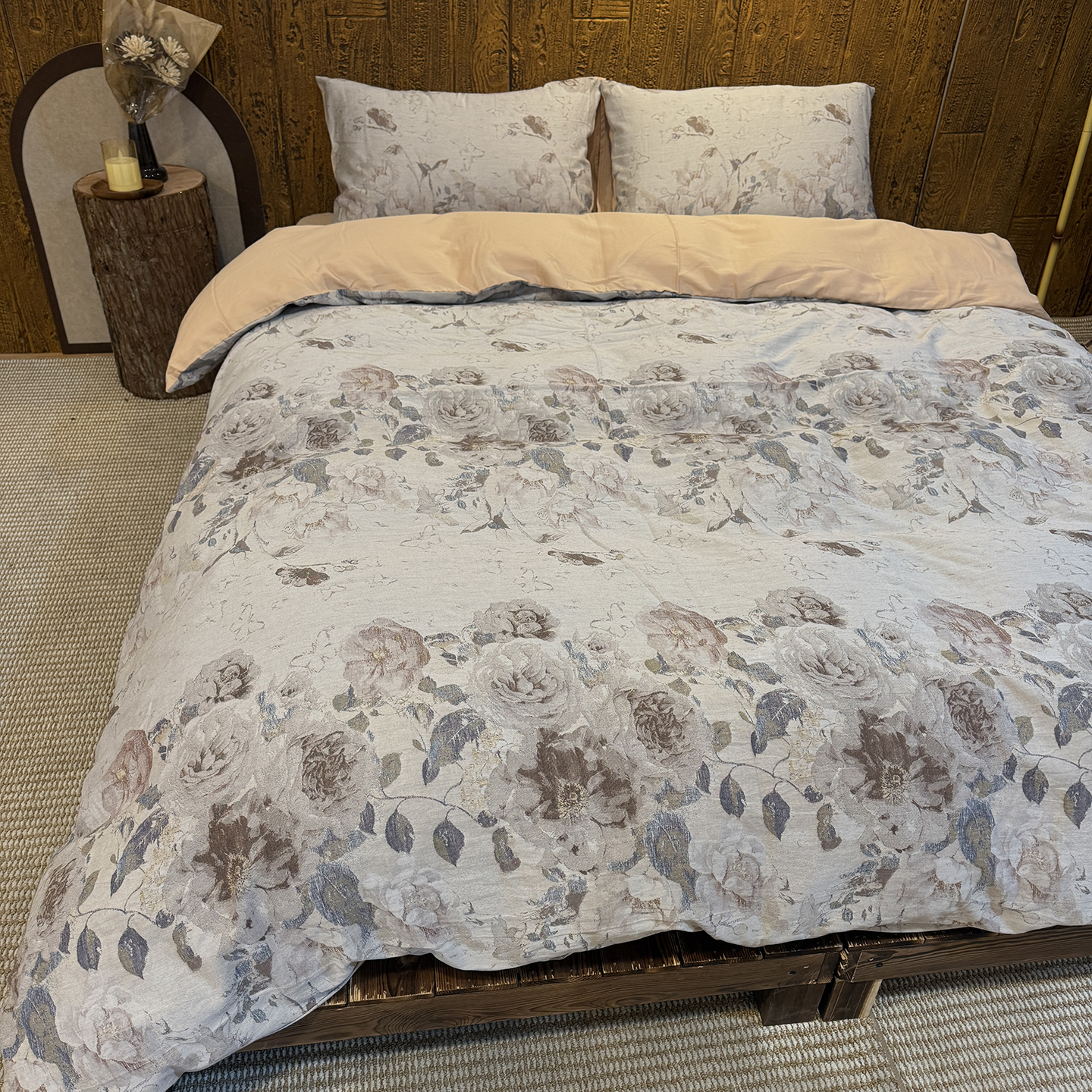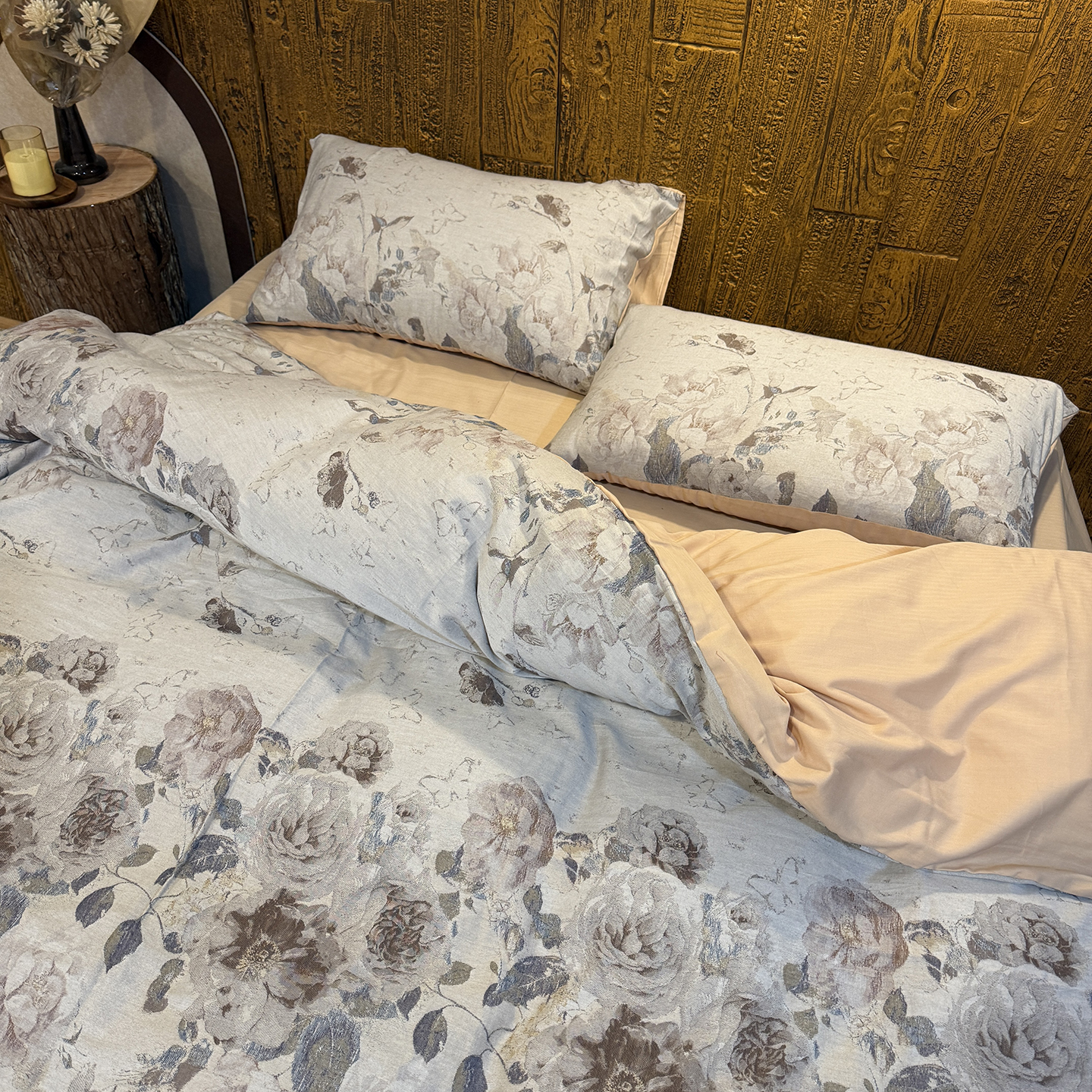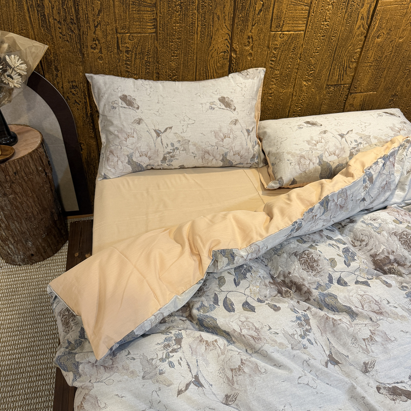 (总)仰望棉麻双层纱供应链 2026新款全棉色织提花四件套-锦暖蔷薇
