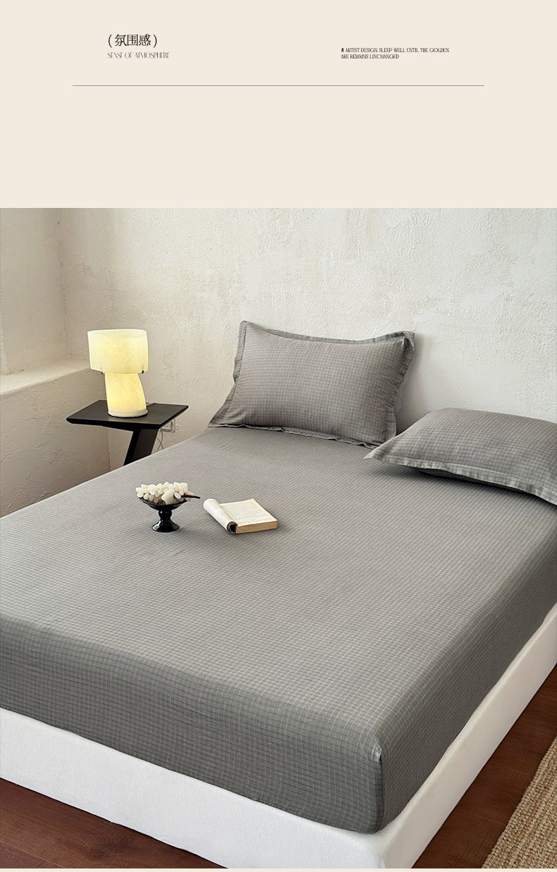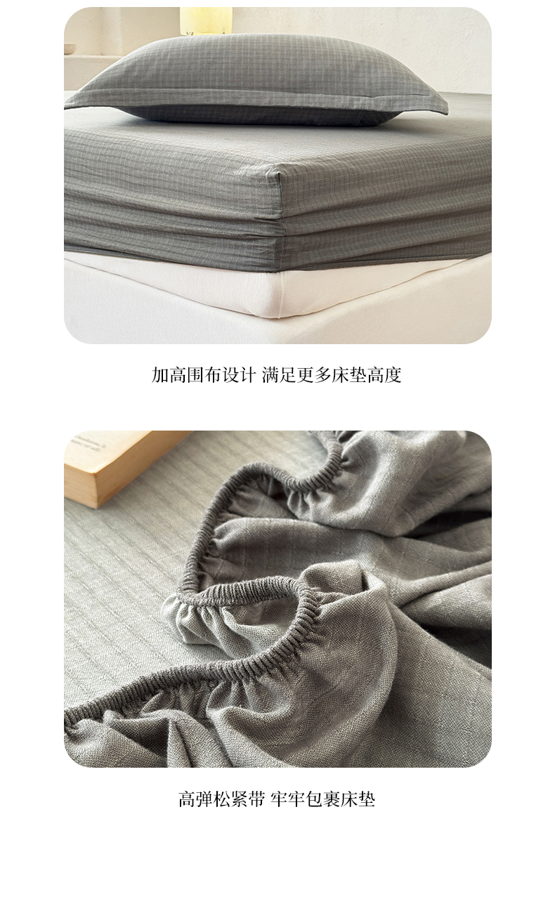 • 91家纺网 家纺一手货源 找家纺 法芙娜家纺 2026新款全棉色织提花床笠 灰