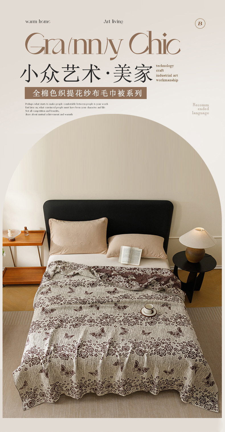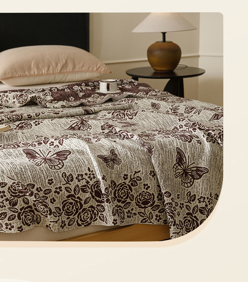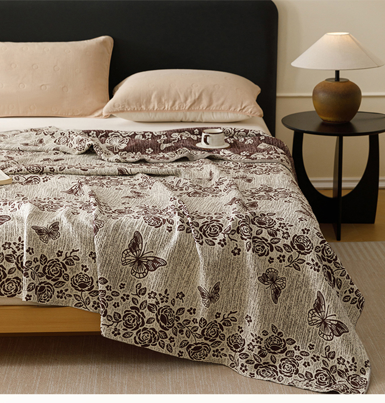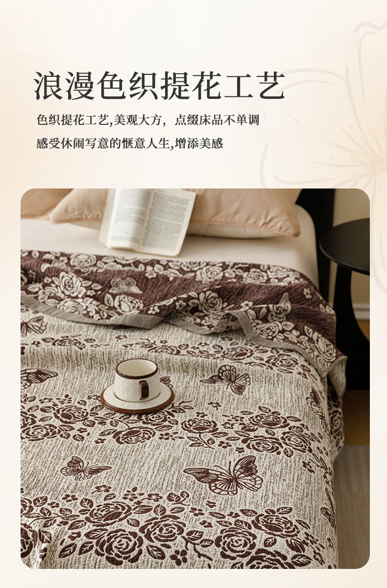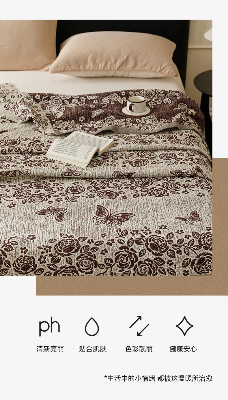 (总)悦然毛巾被 2026新款美拉德色织提花全棉纯棉纱布毛巾被夏被夏凉被空调被,花影蝶梦,花影蝶梦棕,简居,简居咖,夜宴玫瑰,夜宴玫瑰棕,组合图仅供展示不可下单