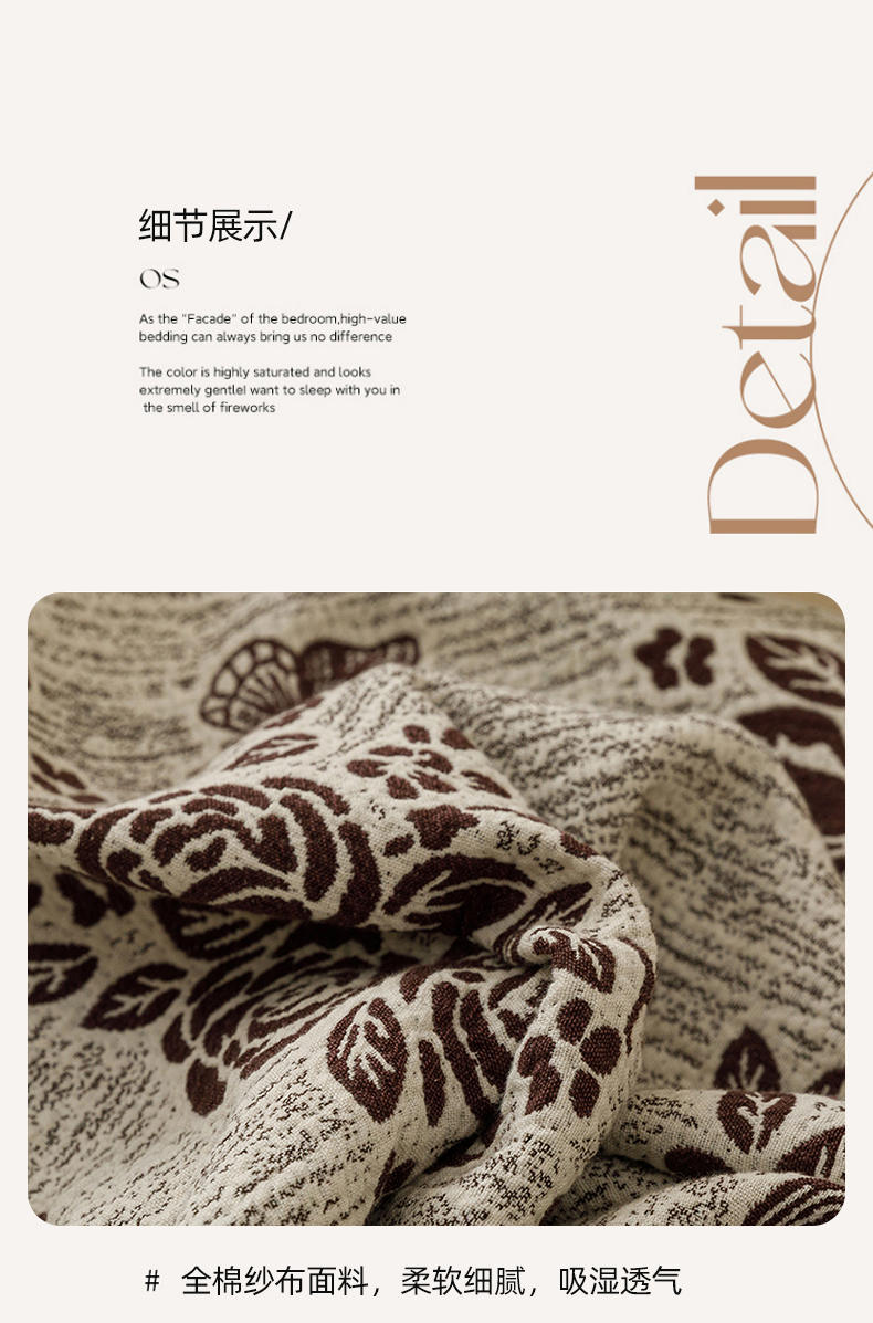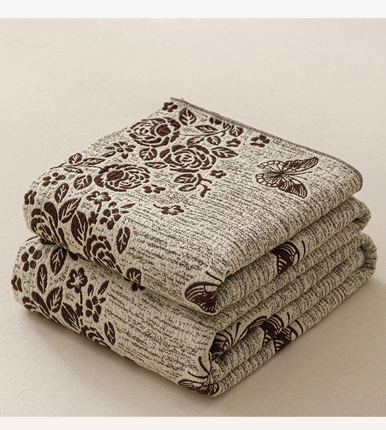 商品名称:悦然毛巾被 2026新款美拉德色织提花全棉纯棉纱布毛巾被夏被夏凉被空调被 花影蝶梦棕