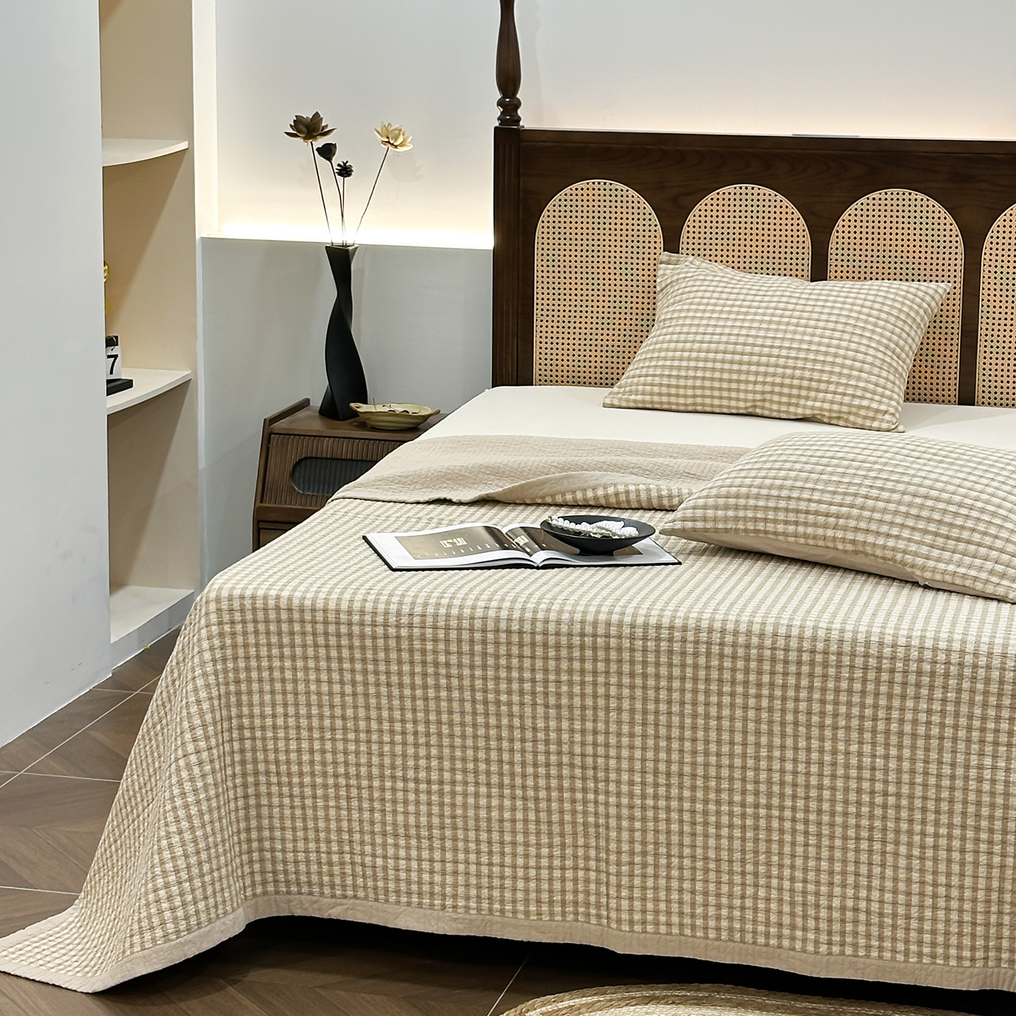 (总)床盖工厂店 2026新款双面全棉水洗棉花糖床盖三件套-米通格系列,米通格-灰色,米通格-咖色,米通格-浅绿,米通格-浅紫,米通格-玉色