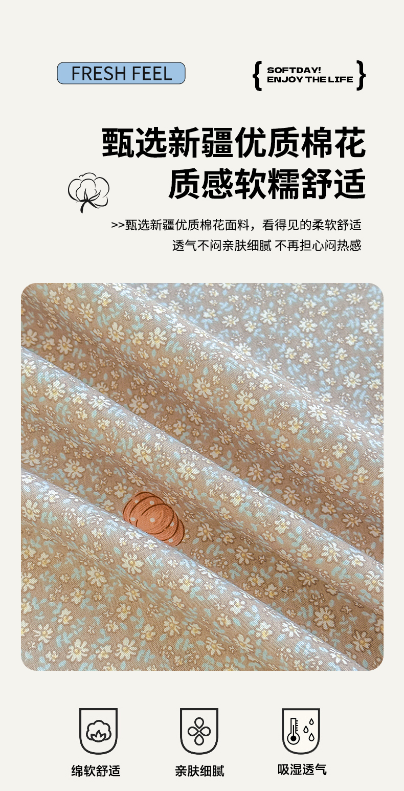商品名称:帛织澜家纺 2026新款A类新疆全棉纯棉12868单品印花床笠系列(预留缩水,提供质检报告) 碎花拾影