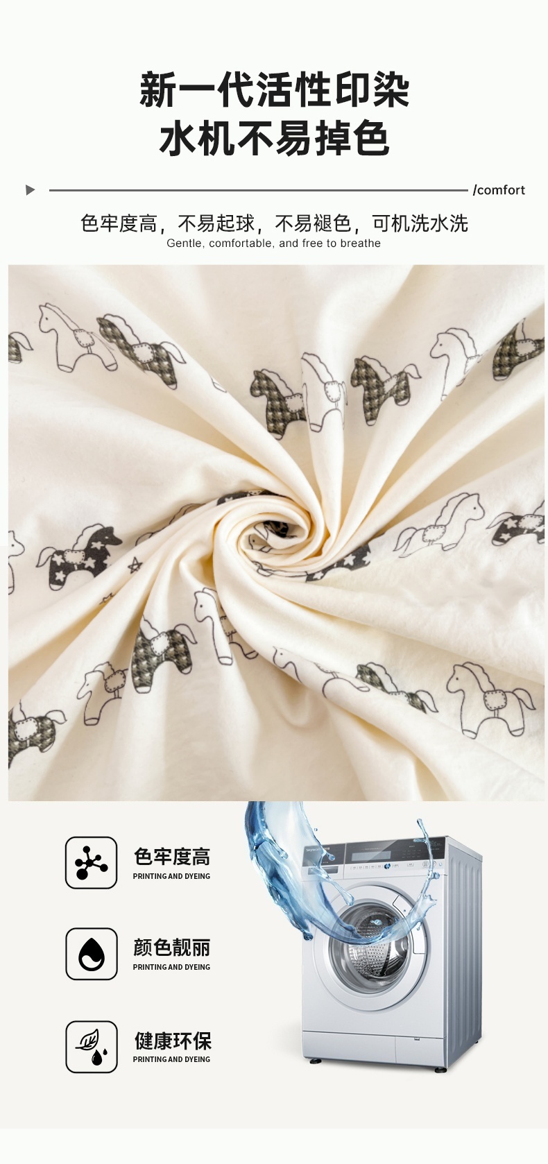 商品名称:圣比熊 2026新款A类云朵棉单层枕套1.8米情侣双人加长枕芯内胆套-单层压线 小木马(单层压线)