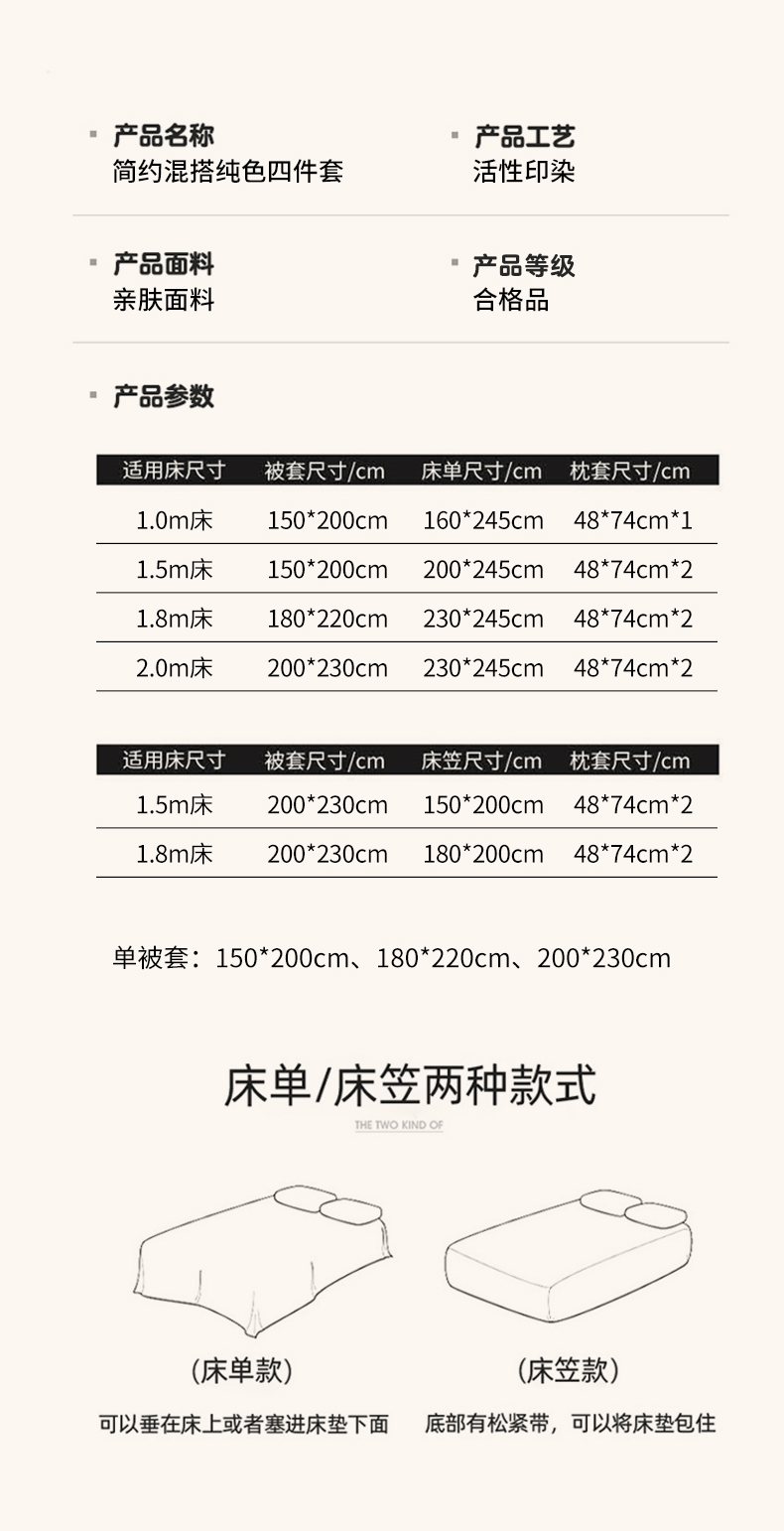 【床笠款】1.8四件套-被套200x230 | ¥48.00 |