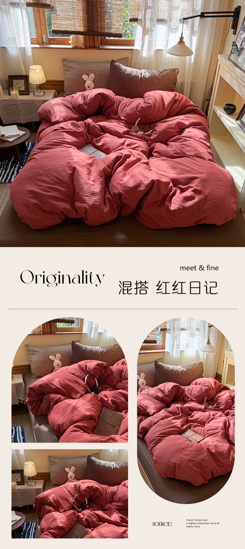 当前位置: 91家纺网 > 商品网购 > 床品套件 > 四件套 > 其它四件套 > 海岛哥哥 2026新款云感纱混搭纯色双拼四件套 混搭 红红日记