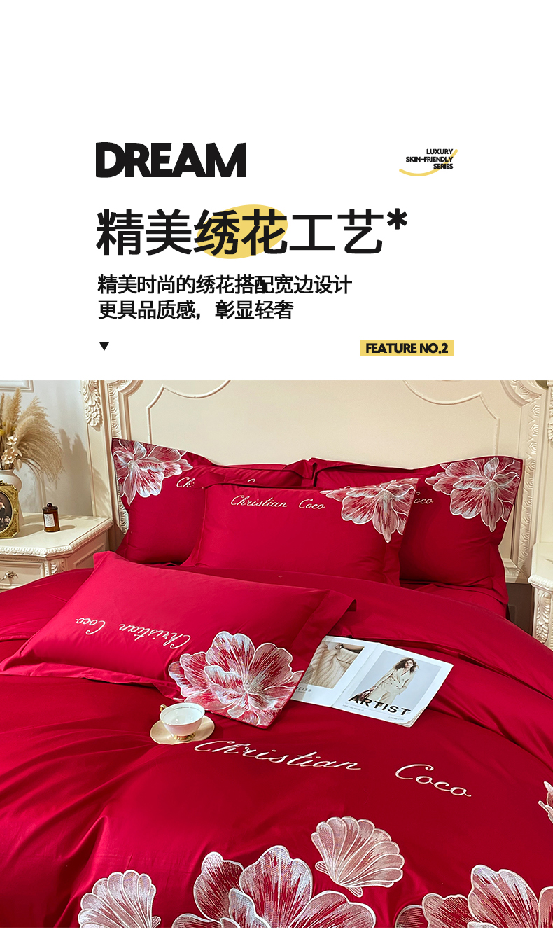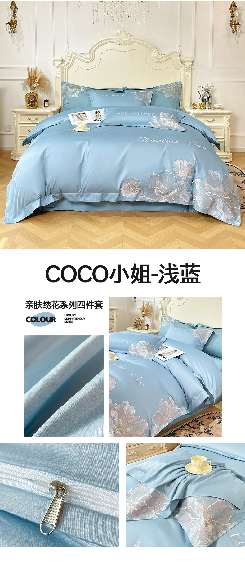 (总)置顶家纺 2026新款亲肤绣花-COCO小姐亲肤棉系列四件套