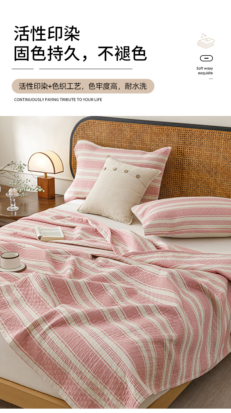 商品名称:(总)悦然毛巾被 2026新款条纹全棉纯棉色织三层纱毛巾被休闲盖毯毯子