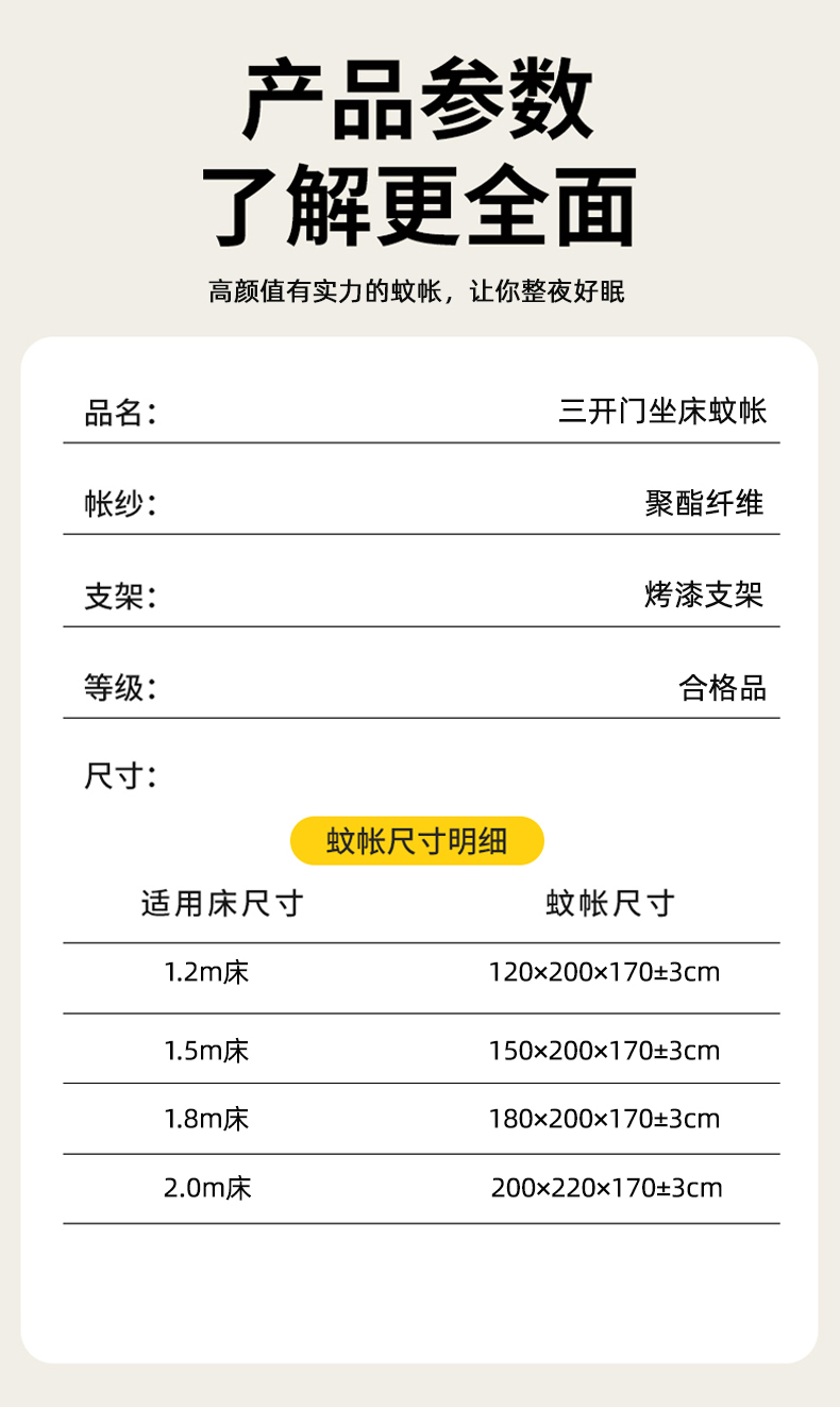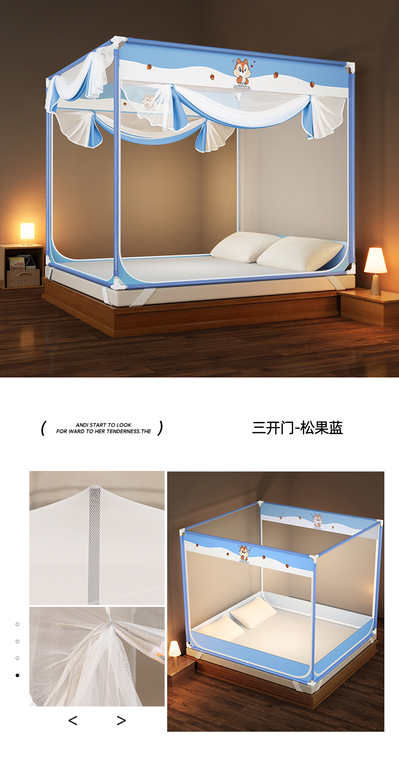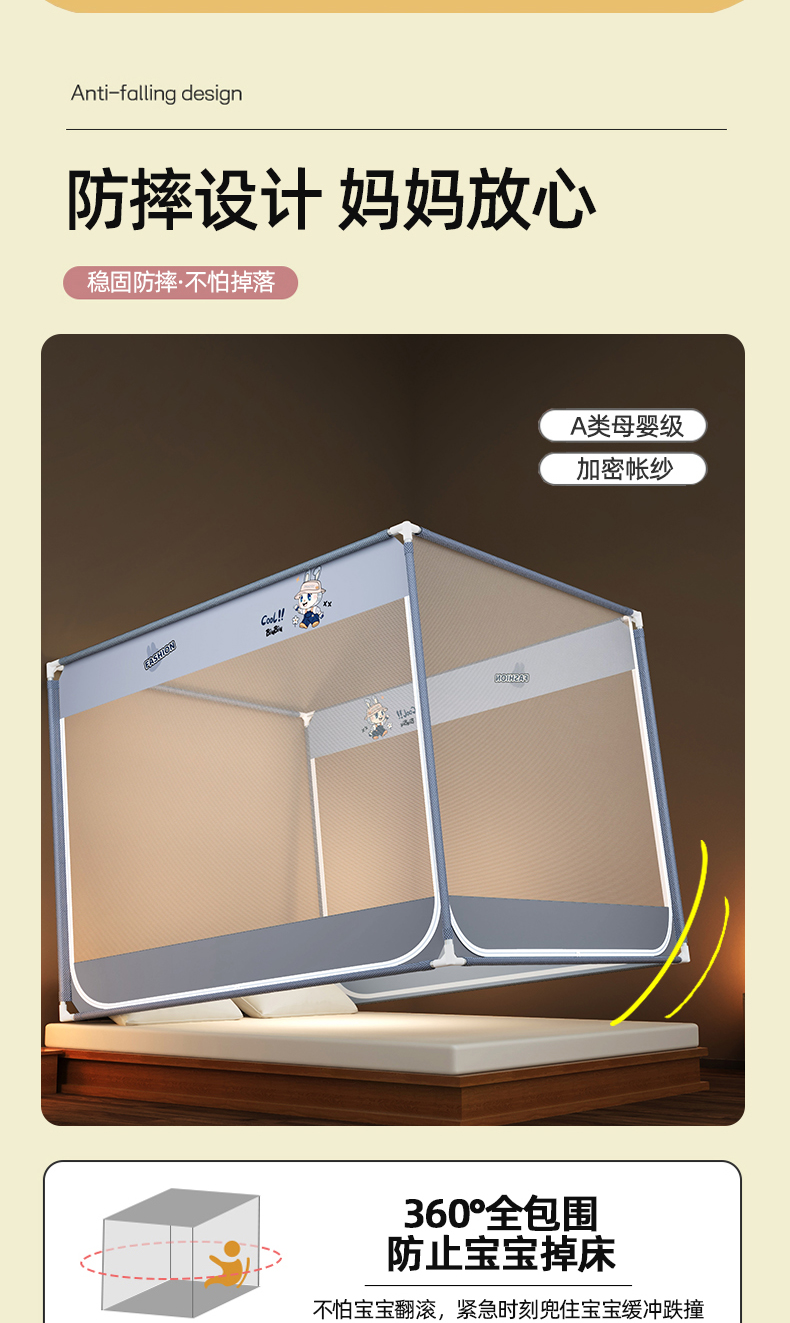 商品名称:(总)青竹苑 2026新款三门全底外穿坐床式蚊帐儿童防摔防蚊拉链方帐