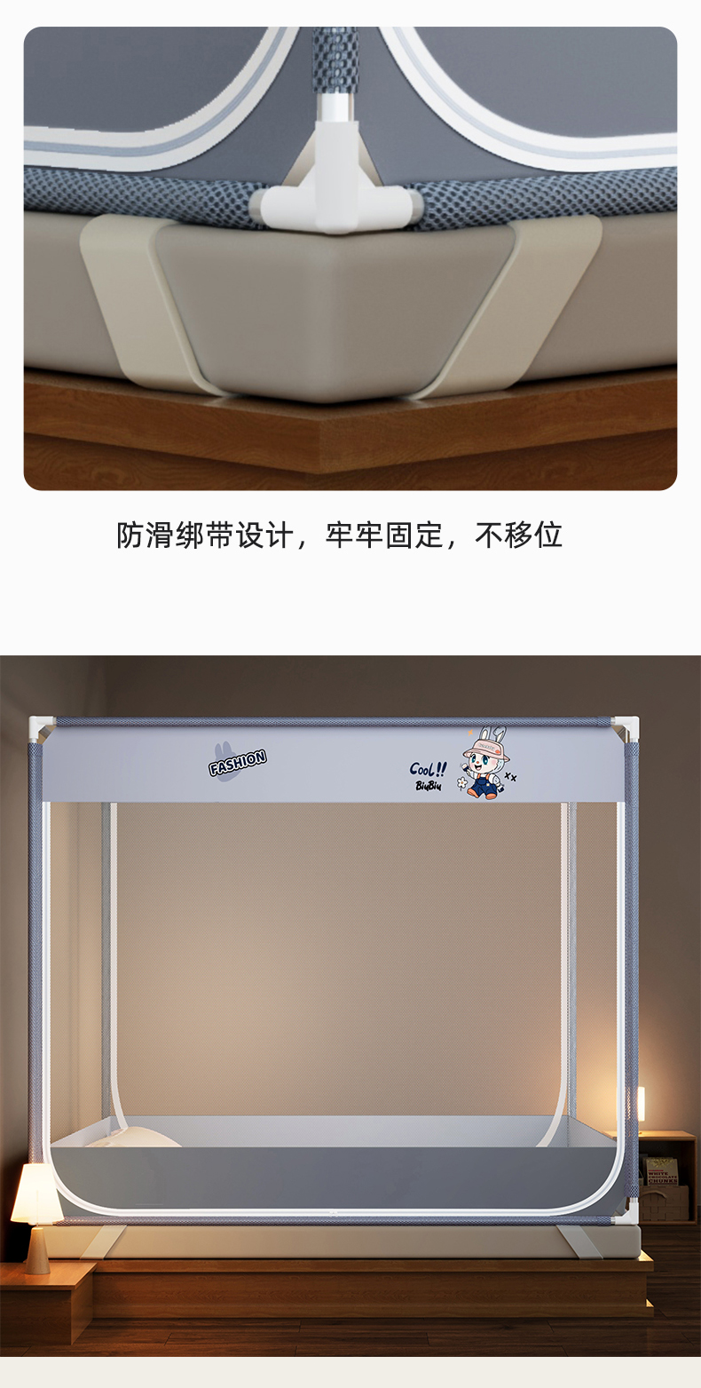 (总)青竹苑 2026新款双门全底外穿坐床式蚊帐儿童防摔防蚊拉链方帐,宾利蓝,大熊猫,简约咖,可爱粉,黎明蓝,三只熊,绅士灰,太空漫步,兔子粉,兔子蓝