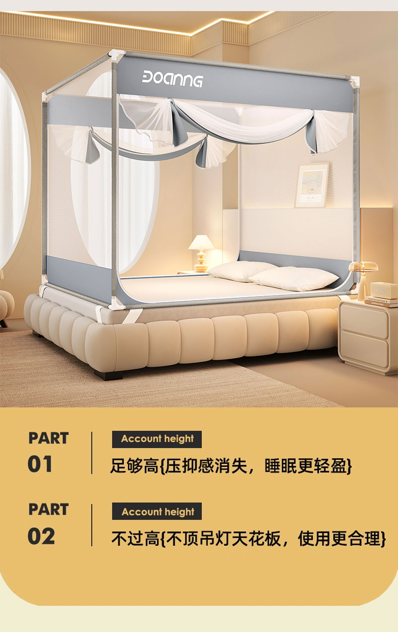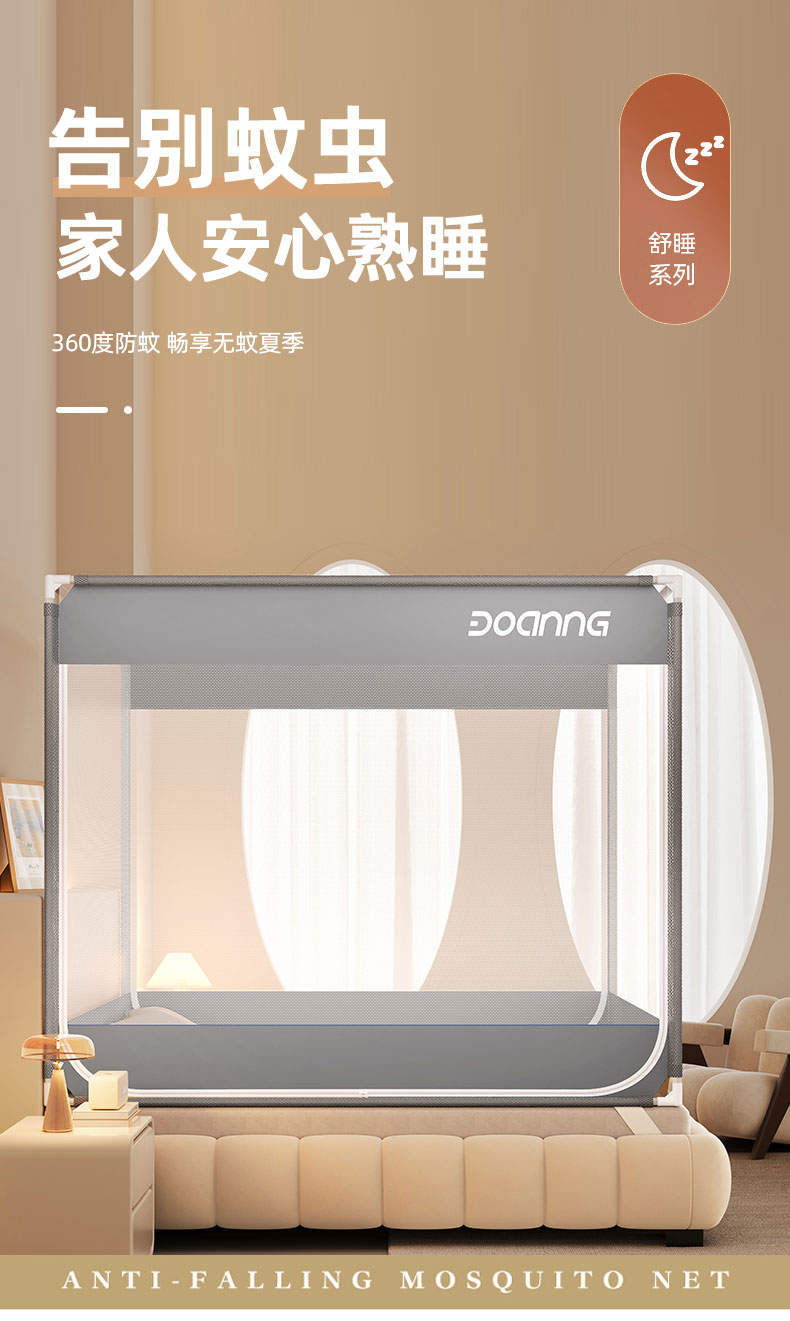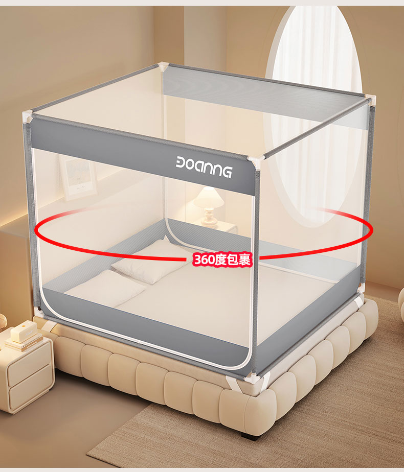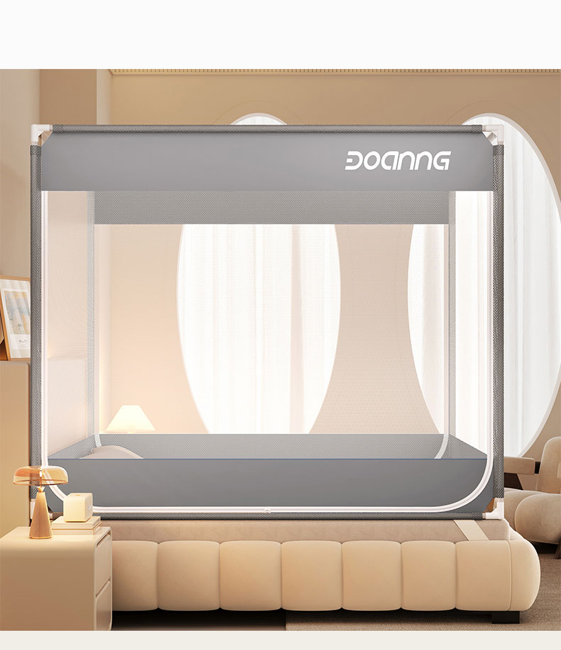 商品名称:青竹苑 2026新款双门全底外穿坐床式蚊帐儿童防摔防蚊拉链方帐 绅士灰