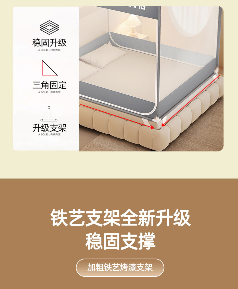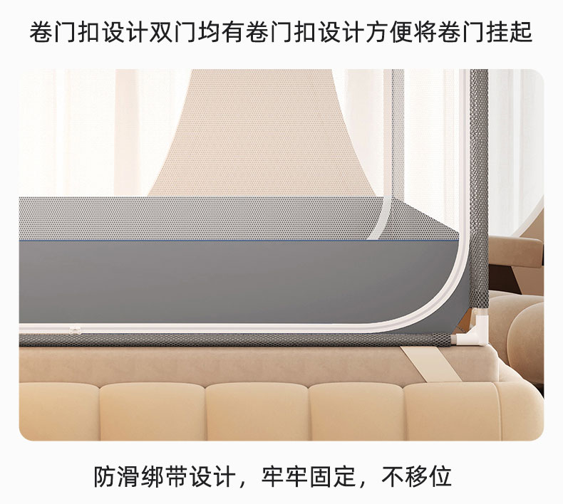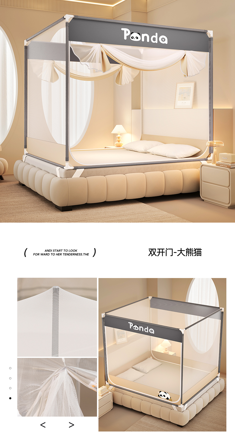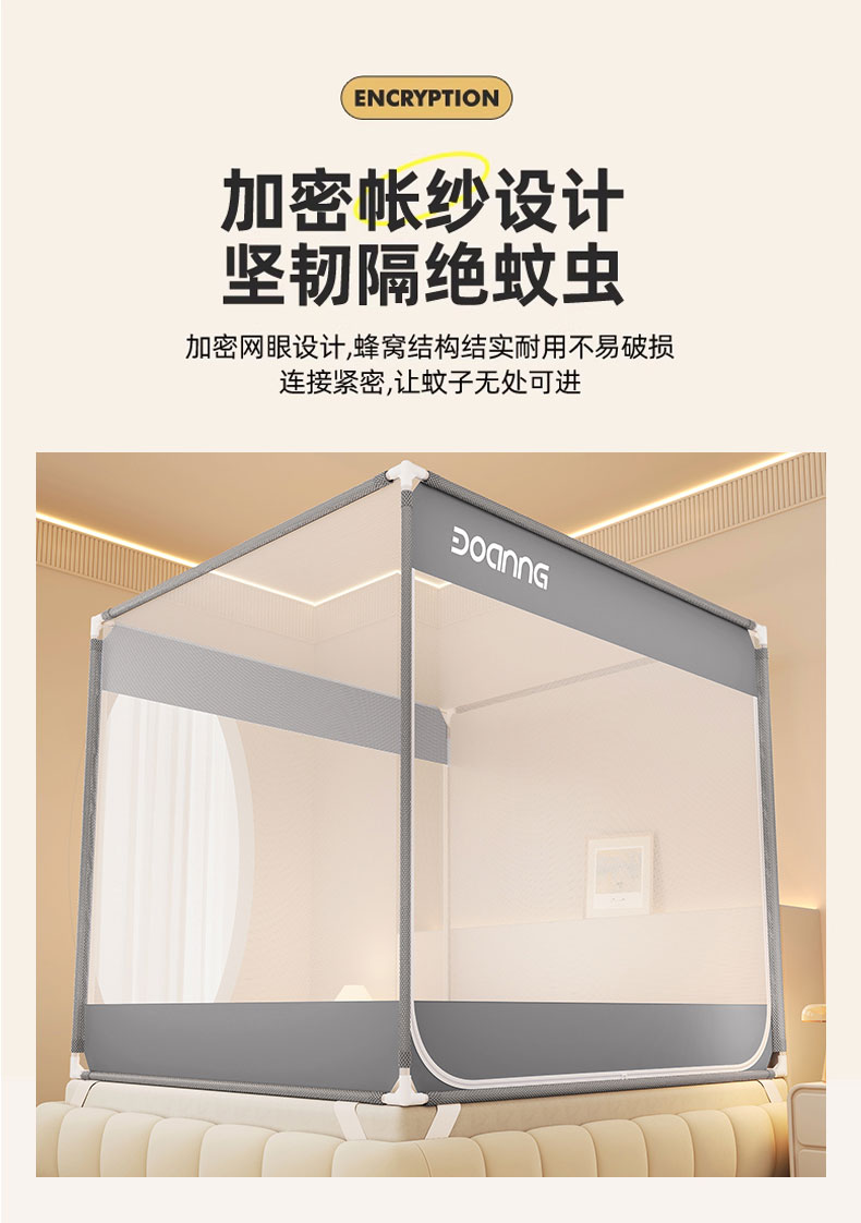 商品名称:青竹苑 2026新款双门全底外穿坐床式蚊帐儿童防摔防蚊拉链方帐 绅士灰