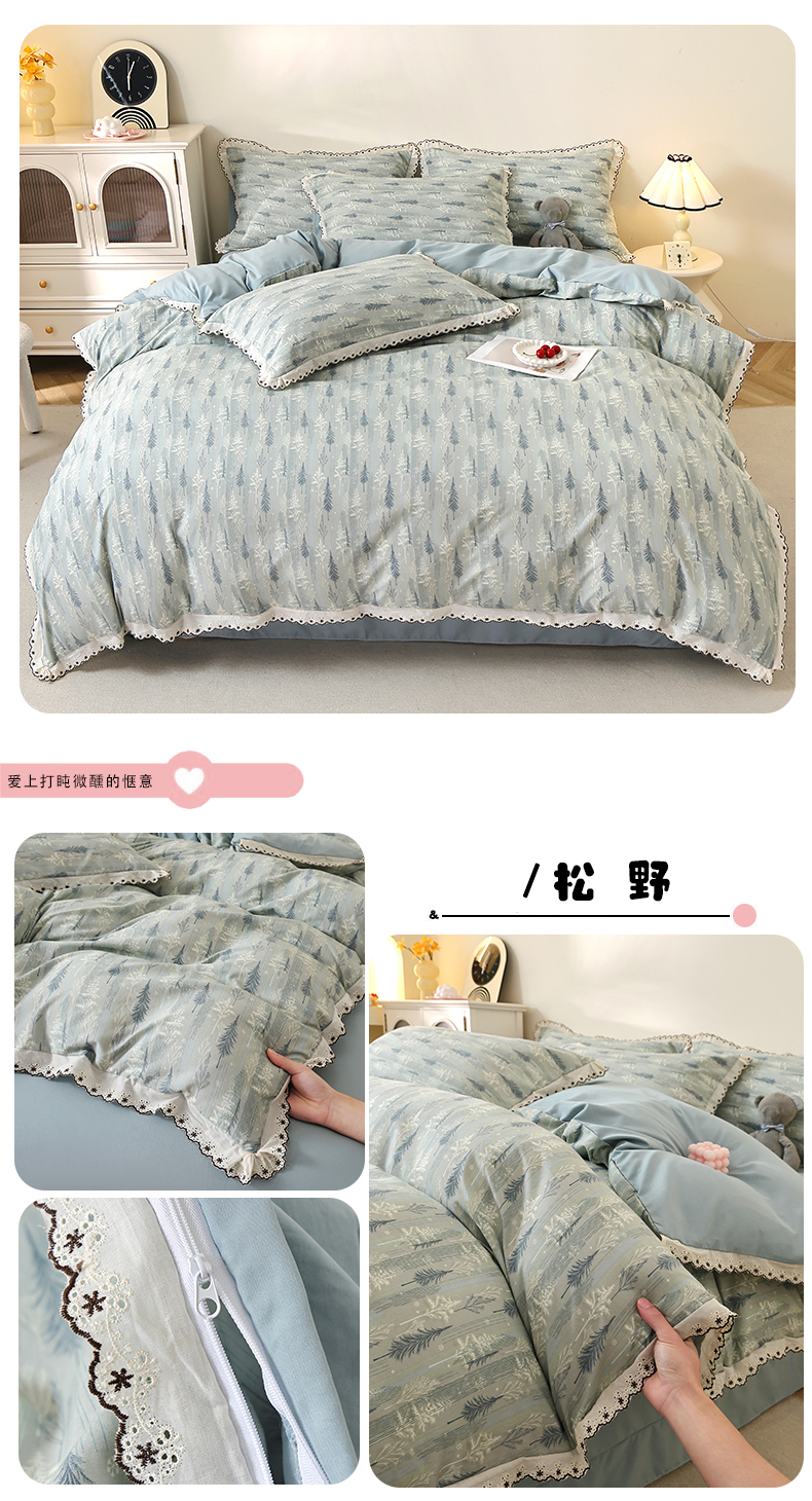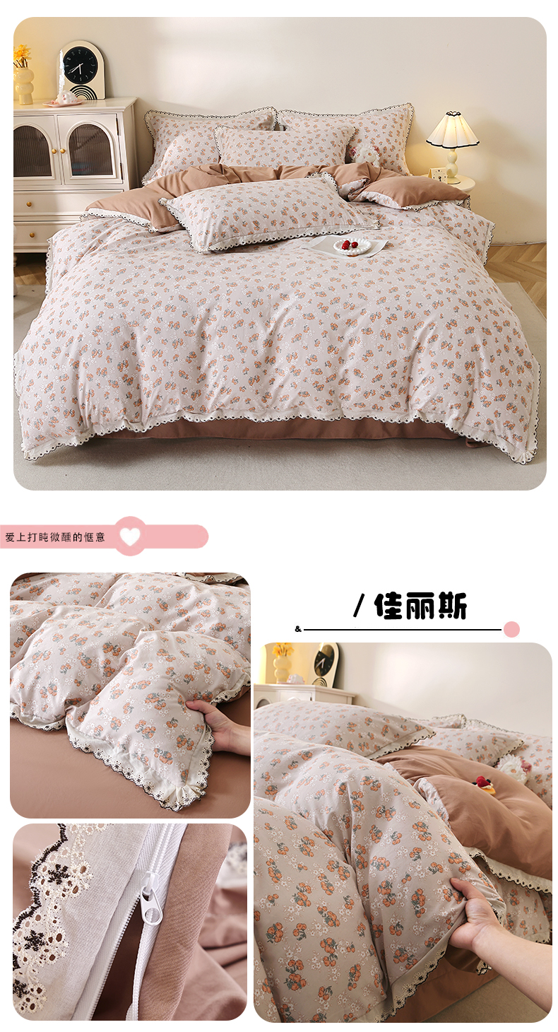 (总)北部居 2026新款水洗仿棉韩版花边款田园复古风小清新四件套,安琪拉,豹纹魅力,春旭,杜桑花园,枫晚,佳丽斯,洛兰,松野,小精灵,紫馨