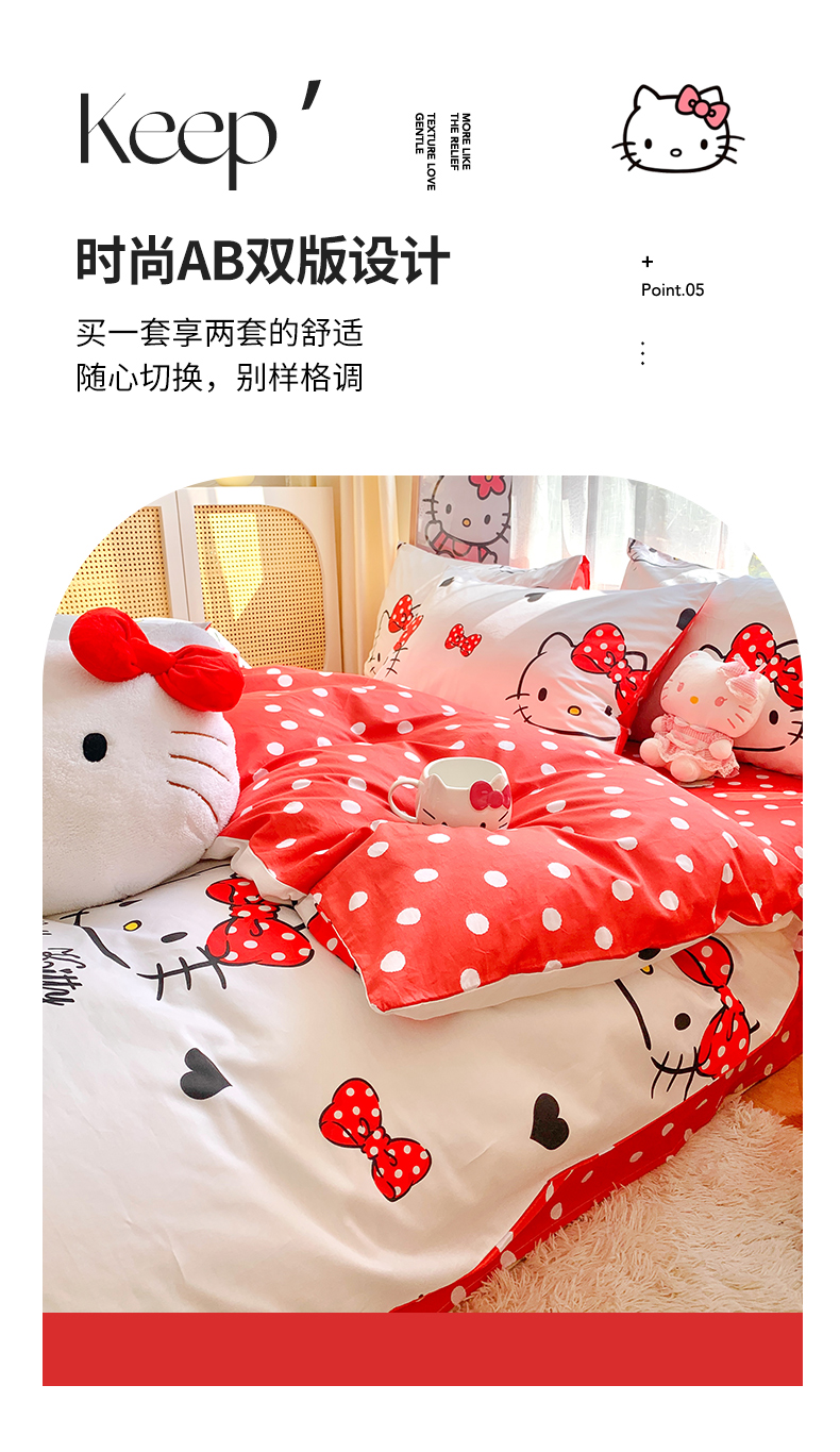 当前位置: 91家纺网 > 商品网购 > 床品套件 > 四件套 > 全棉普通四件套 > 朵希曼 2026新款正版授权全棉纯棉三丽鸥系列 波点凯蒂