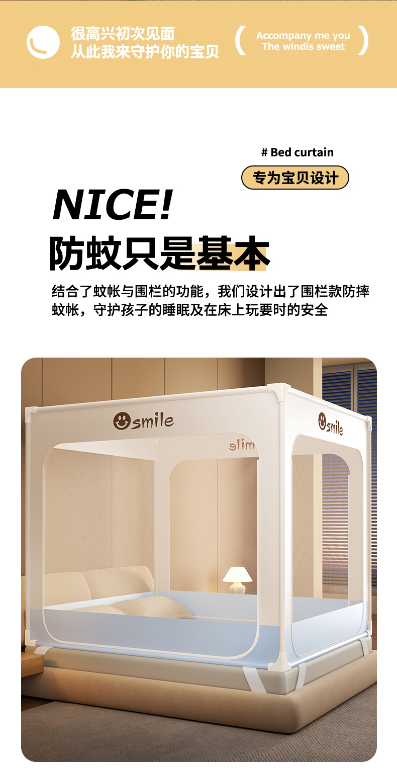 当前位置: 91家纺网 > 商品网购 > 床上用品 > 蚊帐 > 坐床式蚊帐 > 雪姿家纺 2026新款外穿杆三开u型门全底防摔蚊帐-星辰 星辰-米黄