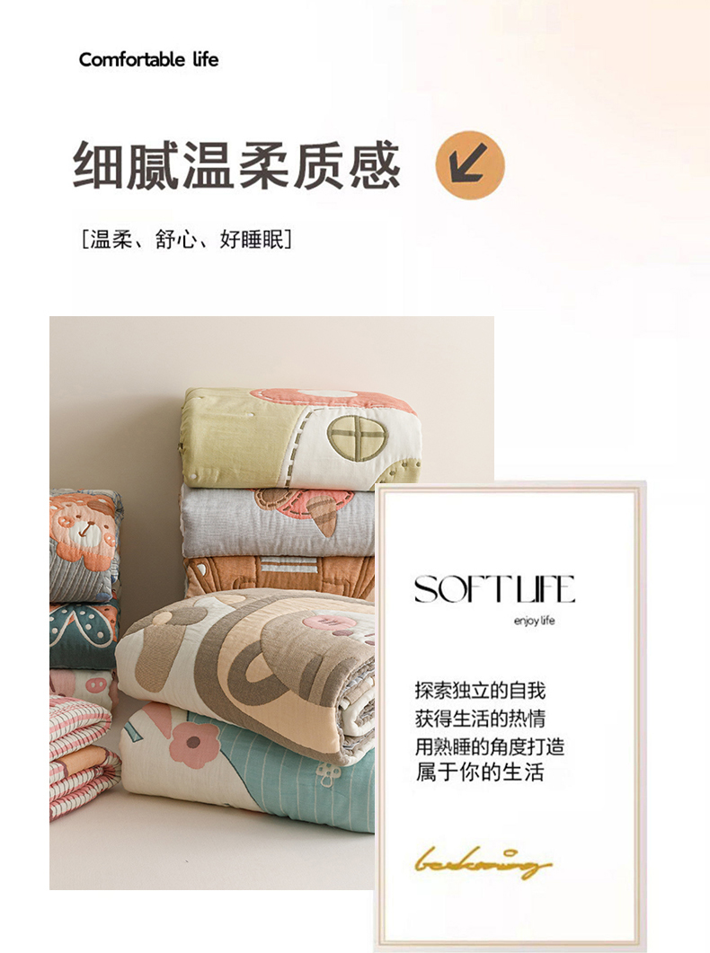 商品名称:朴尔家纺-毛巾被 2026新品纯棉云朵棉卡通独版十层加厚纱布泡芙被毛巾被 欢乐动物
