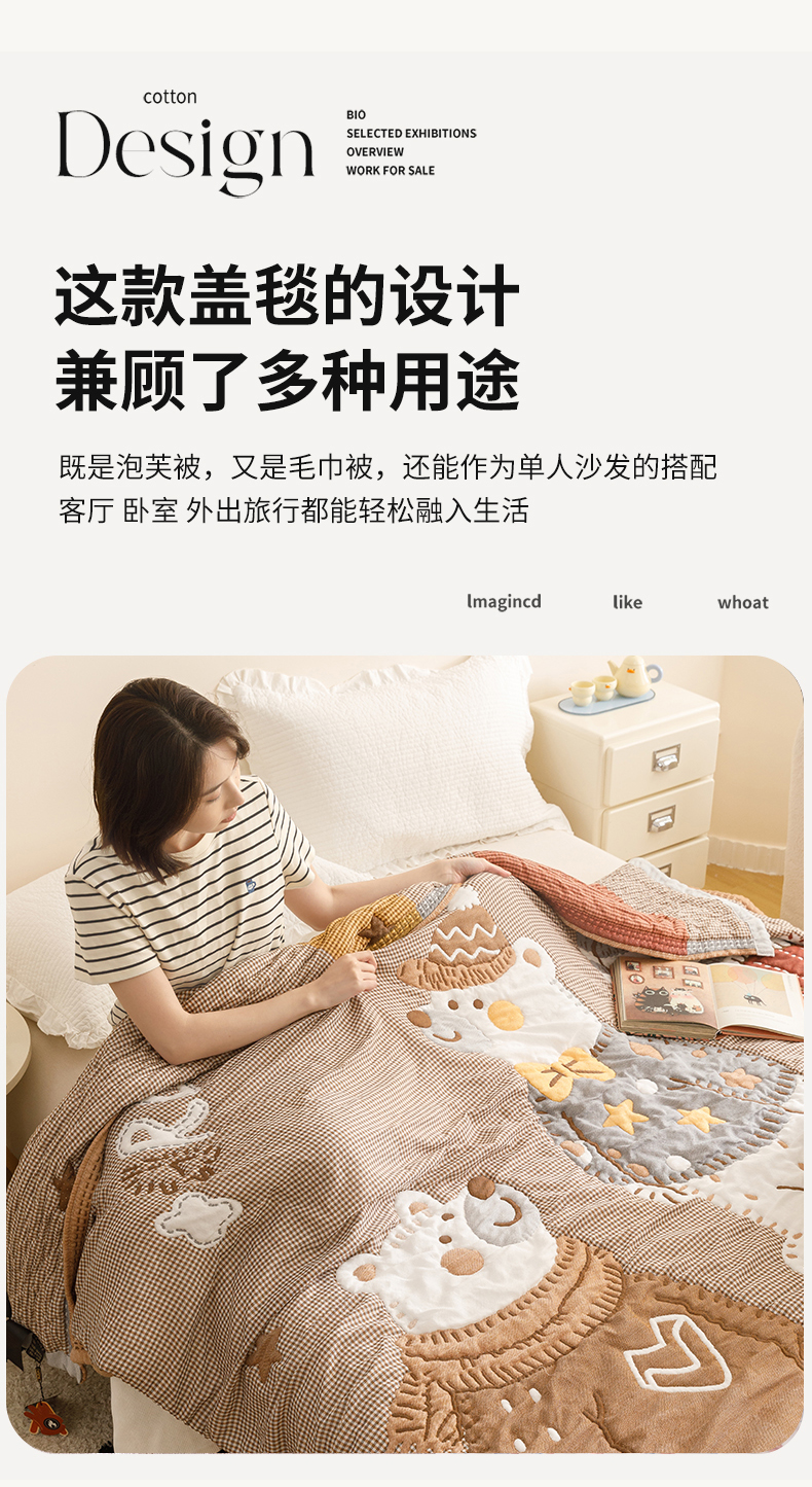 (总)朴尔家纺-毛巾被 2026新品十层轻肤纯棉云朵棉色织提花纱布泡芙被毛巾被,贝尔熊-蓝,贝尔熊-紫,花园坚果熊-绿,花园坚果熊-紫,花枝兔,萌萌宝贝,气球卡皮-灰,气球卡皮-绿,喜乐象,最佳拍档,组合图